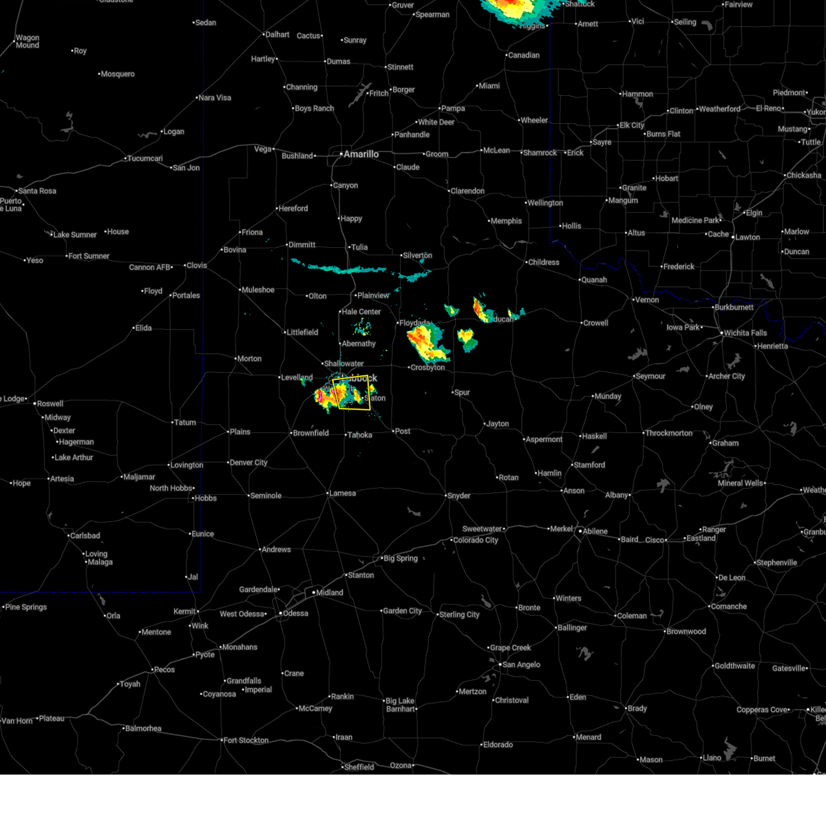 At 827 pm cdt, a severe thunderstorm was located near lubbock international airport, or 9 miles south of abernathy, moving south at 20 mph (radar indicated). Hazards include 70 mph wind gusts and quarter size hail. Hail damage to vehicles is expected. expect considerable tree damage. wind damage is also likely to mobile homes, roofs, and outbuildings. Locations impacted include, lubbock, abernathy, idalou, lorenzo, ransom canyon, lubbock international airport, texas tech university, downtown lubbock, lubbock south plains mall, new deal, buffalo springs, and lubbock science spectrum.