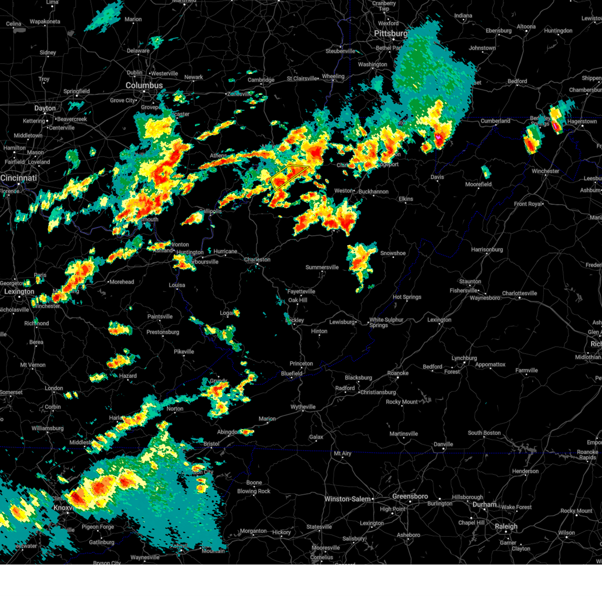 At 710 pm edt, national weather service doppler radar indicated a line of severe thunderstorms capable of producing damaging winds in excess of 60 mph. these storms were located along a line extending from lubeck to mineralwells to elizabeth, or along a line extending from belpre to 6 miles northwest of elizabeth to elizabeth, moving northeast at 40 mph. * other locations in the warning include but are not limited to pennsboro, north bend state park, belmont, williamstown, washington, vienna and boaz. this will impact the following interstates, i-77 between mile markers 1 and 8 in ohio, and between mile markers 168 and 186 in west virginia. very heavy rain will also fall from this line of severe thunderstorms, and will cause water to pond on roads and quickly fill roadside ditches and small streams. a severe thunderstorm watch remains in effect until 1000 pm edt monday evening for central kentucky and southeast ohio and central west virginia. a severe thunderstorm watch also remains in effect until 100 am edt tuesday morning for central west virginia. please report hail or strong wind to the national weather service by calling toll free, 800-401-9535, when you can do so safely. you may also report severe weather by posting your report to the charleston west virginia national weather service facebook page, or by using the twitter hashtag, nwsrlx.