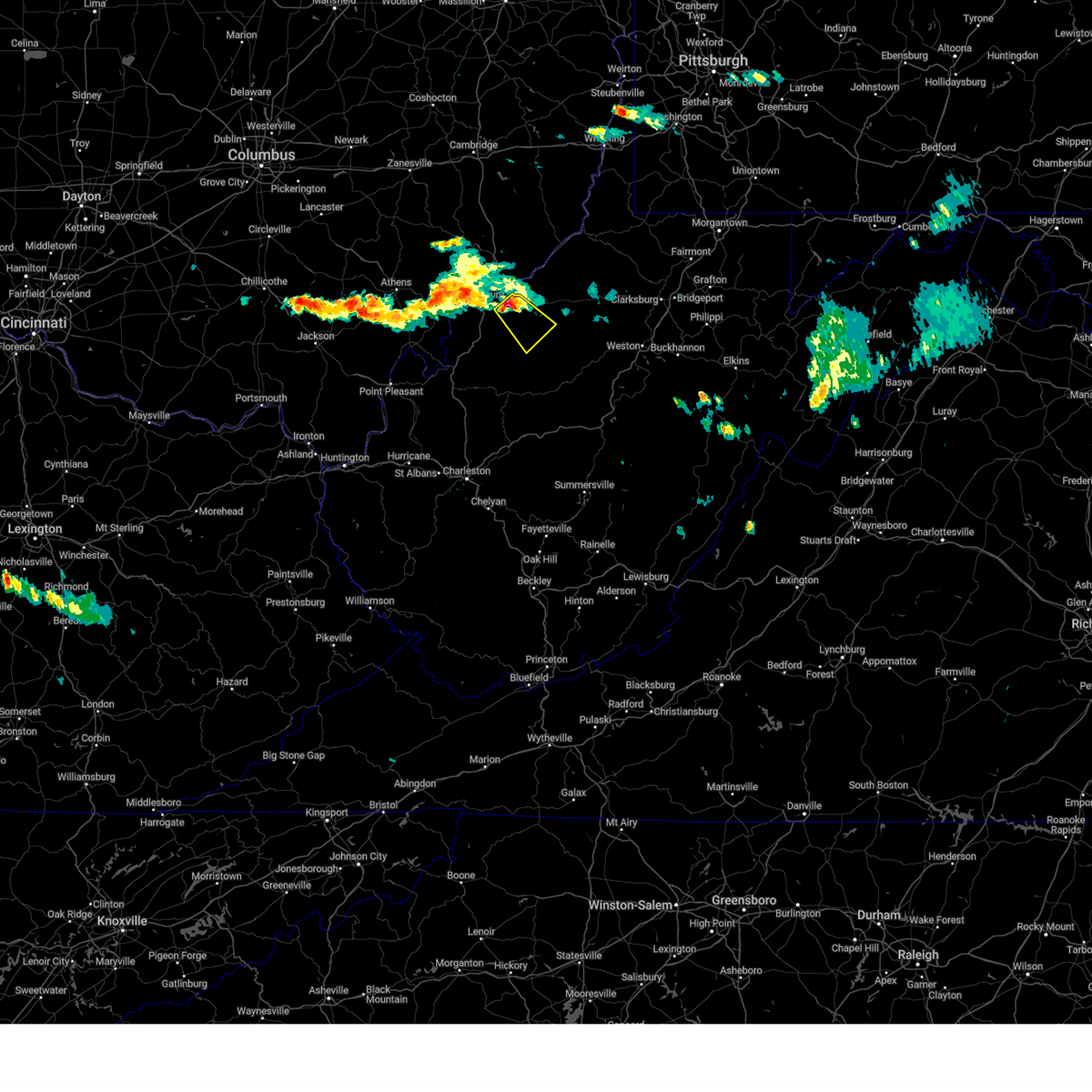 At 730 pm edt, national weather service doppler radar continued to indicate a line of severe thunderstorms capable of producing damaging winds in excess of 60 mph. these storms were located along a line extending from williamstown to schultz to cairo, or along a line extending from marietta to 9 miles southwest of st. marys to 8 miles southwest of harrisville, moving northeast at 45 mph. other locations in the warning include but are not limited to nutter farm, willow island, devola, belmont, north bend state park, newport, maxwell, ellenboro, pike, highland, mountain, wick, arvilla, hebron, point lookout, matamoras, new matamoras, lower salem, pennsboro and friendly this will impact the following interstates, i-77 between mile markers 1 and 8 in ohio, and between mile markers 171 and 186 in west virginia. very heavy rain will also fall from this line of severe thunderstorms, and will cause water to pond on roads and quickly fill roadside ditches and small streams. a severe thunderstorm watch remains in effect until 1000 pm edt monday evening for central kentucky and southeast ohio and central west virginia. a severe thunderstorm watch also remains in effect until 100 am edt tuesday morning for central west virginia. please report severe weather to the national weather service by calling toll free, 800-401-9535, when you can do so safely. you may also report severe weather by posting your report to the charleston west virginia national weather service facebook page, or by using the twitter hashtag, nwsrlx.