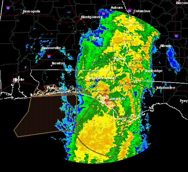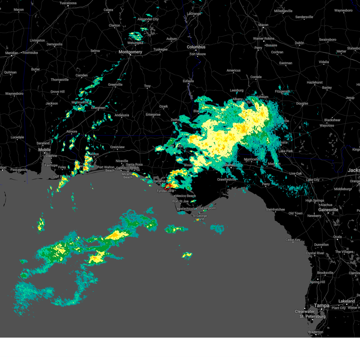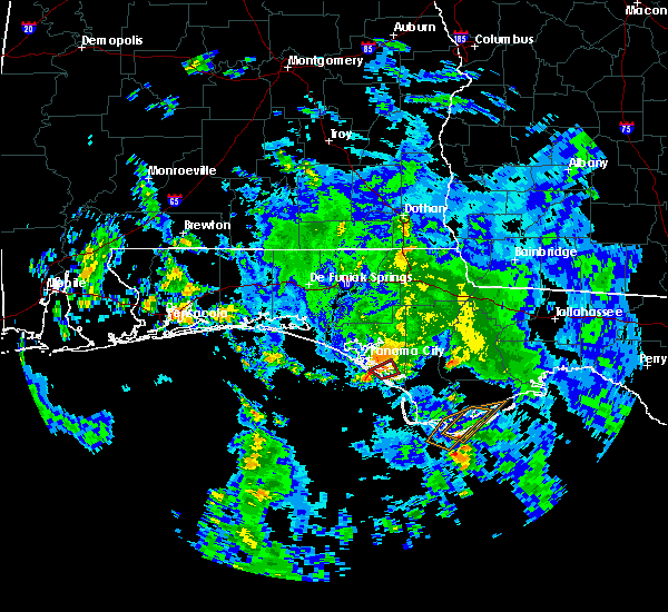At 243 am cst, a severe thunderstorm capable of producing a tornado was located 8 miles south of panama city beach, moving northeast at 35 mph (radar indicated rotation). Hazards include tornado. Flying debris will be dangerous to those caught without shelter. mobile homes will be damaged or destroyed. damage to roofs, windows and vehicles will occur. tree damage is likely. this dangerous storm will be near, tyndall air force base around 255 am cst. panama city around 300 am cst. lynn haven, callaway, springfield and hiland park around 305 am cst. Other locations impacted by this tornadic thunderstorm include bayou george, biltmore beach, millville, parker, recota beach, cairo, southport, dirego park, college station and bay harbor.