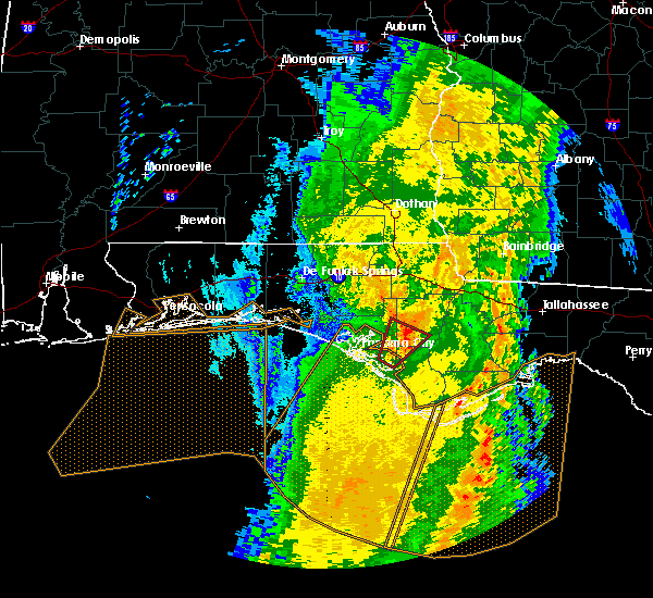 Svrtae the national weather service in tallahassee has issued a * severe thunderstorm warning for, southern geneva county in southeastern alabama, southeastern houston county in southeastern alabama, jackson county in the panhandle of florida, bay county in the panhandle of florida, western calhoun county in the panhandle of florida, walton county in the panhandle of florida, holmes county in the panhandle of florida, washington county in the panhandle of florida, central seminole county in southwestern georgia, * until 630 am edt/530 am cdt/. * at 502 am edt/402 am cdt/, severe thunderstorms were located along a line extending from near river falls to 7 miles southwest of baker to near oriole beach, moving east at 75 mph (radar indicated). Hazards include 70 mph wind gusts and quarter size hail. Hail damage to vehicles is expected. expect considerable tree damage. Wind damage is also likely to mobile homes, roofs, and outbuildings.