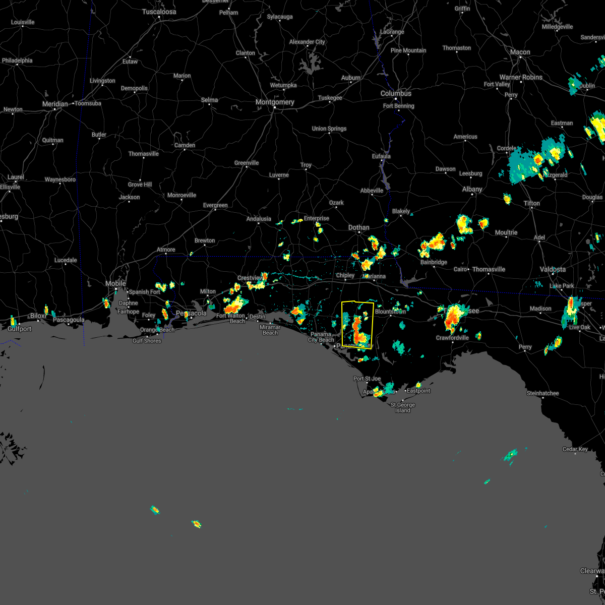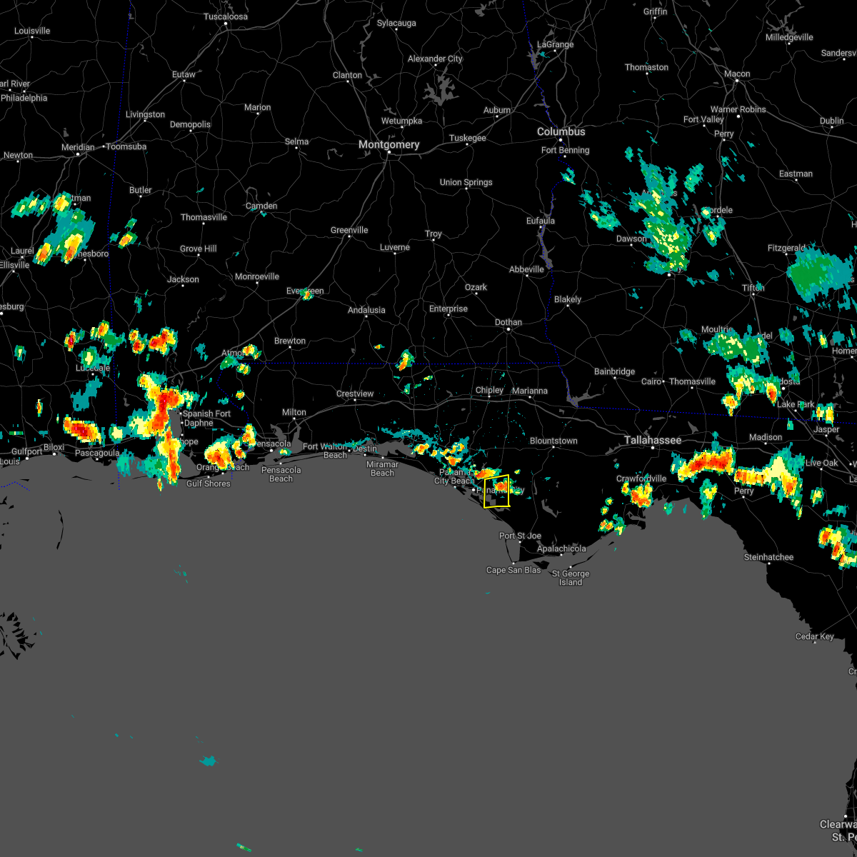 At 1121 pm cst, a severe thunderstorm capable of producing a tornado was located 8 miles south of panama city beach, moving northeast at 50 mph (radar indicated rotation). Hazards include tornado. Flying debris will be dangerous to those caught without shelter. mobile homes will be damaged or destroyed. damage to roofs, windows and vehicles will occur. tree damage is likely. this dangerous storm will be near, tyndall air force base around 1130 pm cst. panama city, callaway, springfield and hiland park around 1135 pm cst. lynn haven around 1140 pm cst. Other locations impacted by this tornadic thunderstorm include gainer spring, bayou george, biltmore beach, millville, camp flowers, parker, st andrews state park, recota beach, vicksburg and southport.