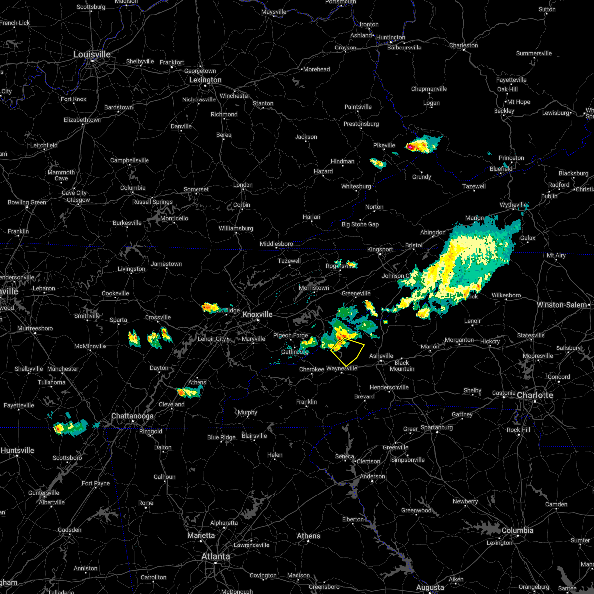 At 523 pm edt, severe thunderstorms were located along a line extending from 11 miles southwest of greeneville tennessee to 10 miles southeast of newport to 11 miles northeast of gatlinburg, moving southeast at 25 mph (radar indicated). Hazards include 60 mph wind gusts. expect damage to trees and power lines