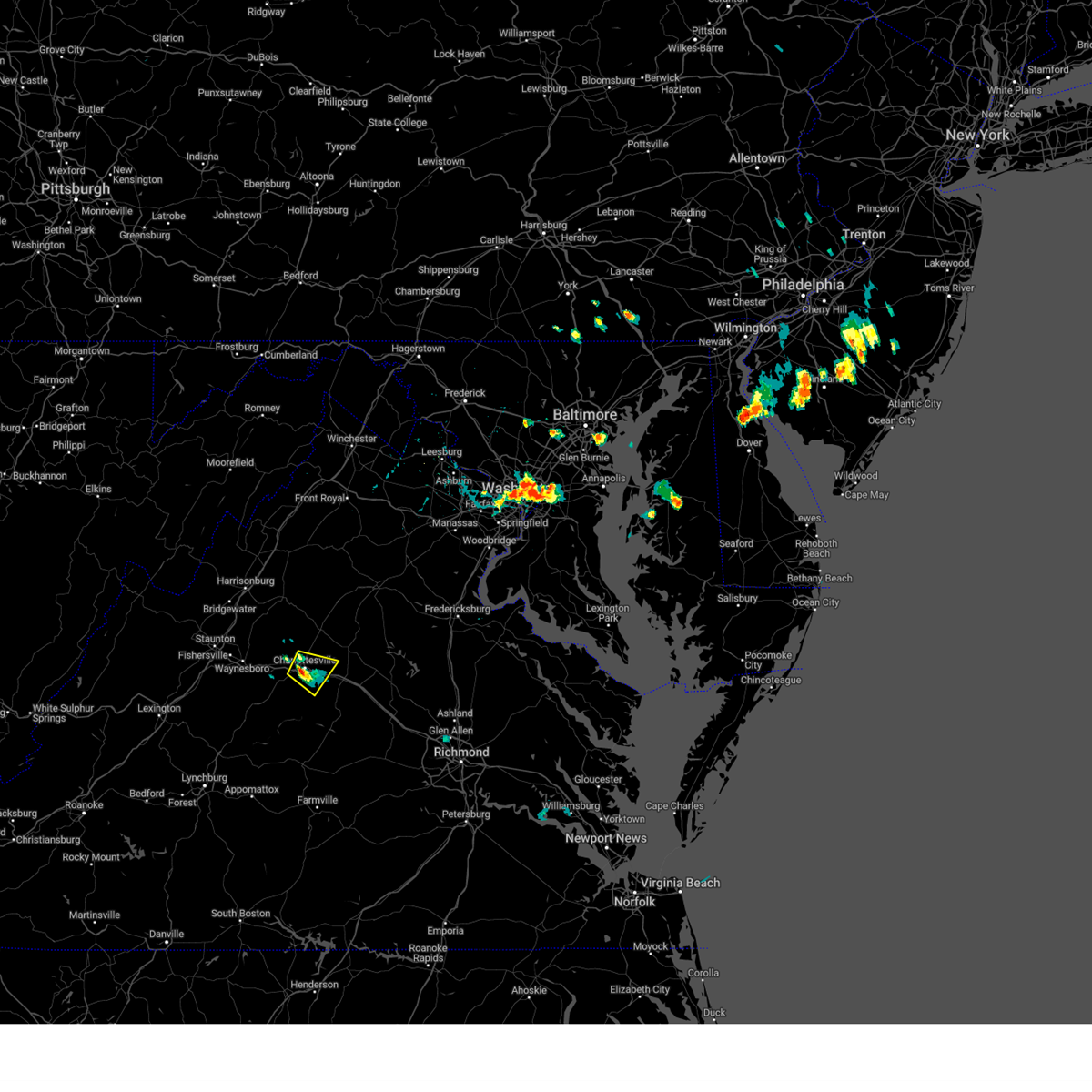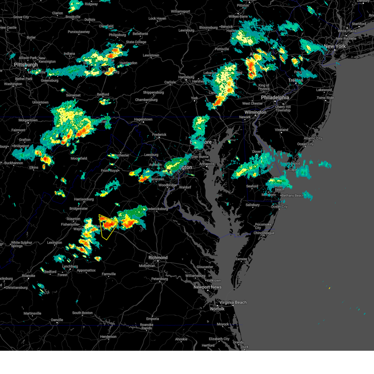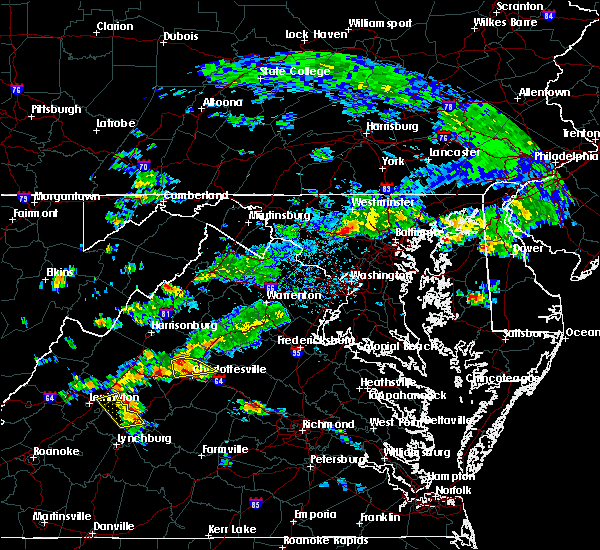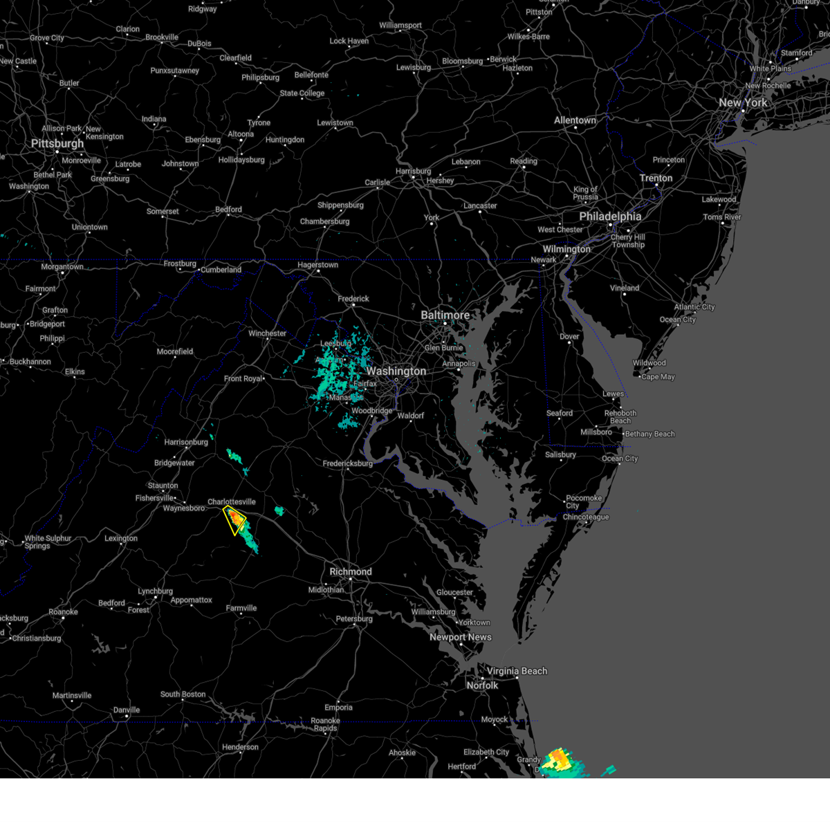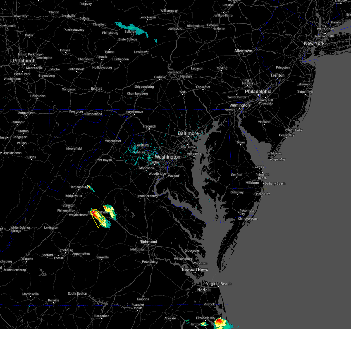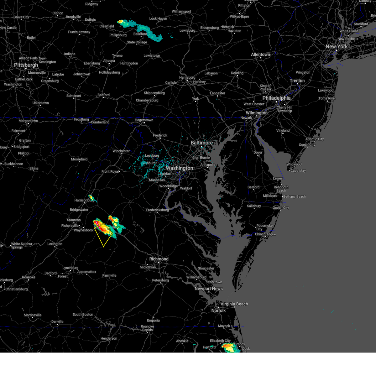 Svrlwx the national weather service in sterling virginia has issued a * severe thunderstorm warning for, madison county in northwestern virginia, the city of charlottesville in central virginia, southwestern orange county in central virginia, southeastern rockingham county in western virginia, central albemarle county in central virginia, southern rappahannock county in northwestern virginia, greene county in central virginia, southwestern culpeper county in northern virginia, * until 915 pm edt. * at 809 pm edt, a severe thunderstorm was located near crozet, or 10 miles southeast of waynesboro, moving northeast at 55 mph (radar indicated). Hazards include 60 mph wind gusts and quarter size hail. Damaging winds will cause some trees and large branches to fall. this could injure those outdoors, as well as damage homes and vehicles. roadways may become blocked by downed trees. localized power outages are possible. Unsecured light objects may become projectiles.