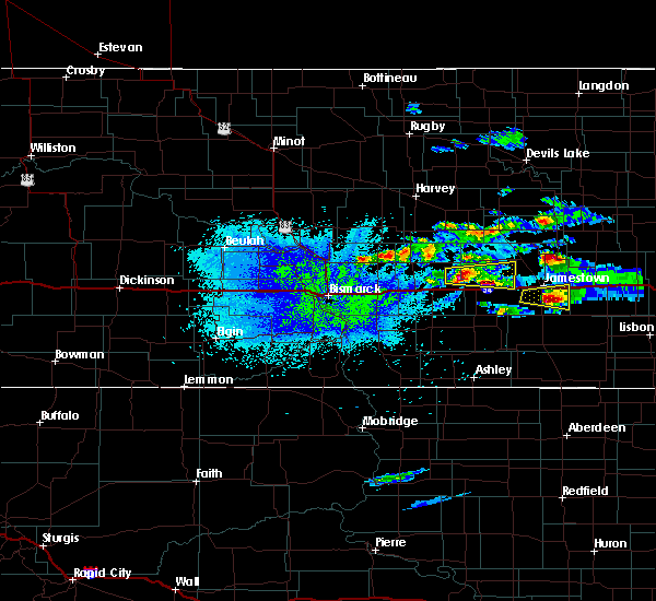 A severe thunderstorm warning remains in effect until 915 pm cdt for southwestern stutsman county. at 901 pm cdt, a severe thunderstorm was located near medina, moving north at 40 mph. hazard. 60 mph wind gusts and quarter size hail. source. Radar indicated.