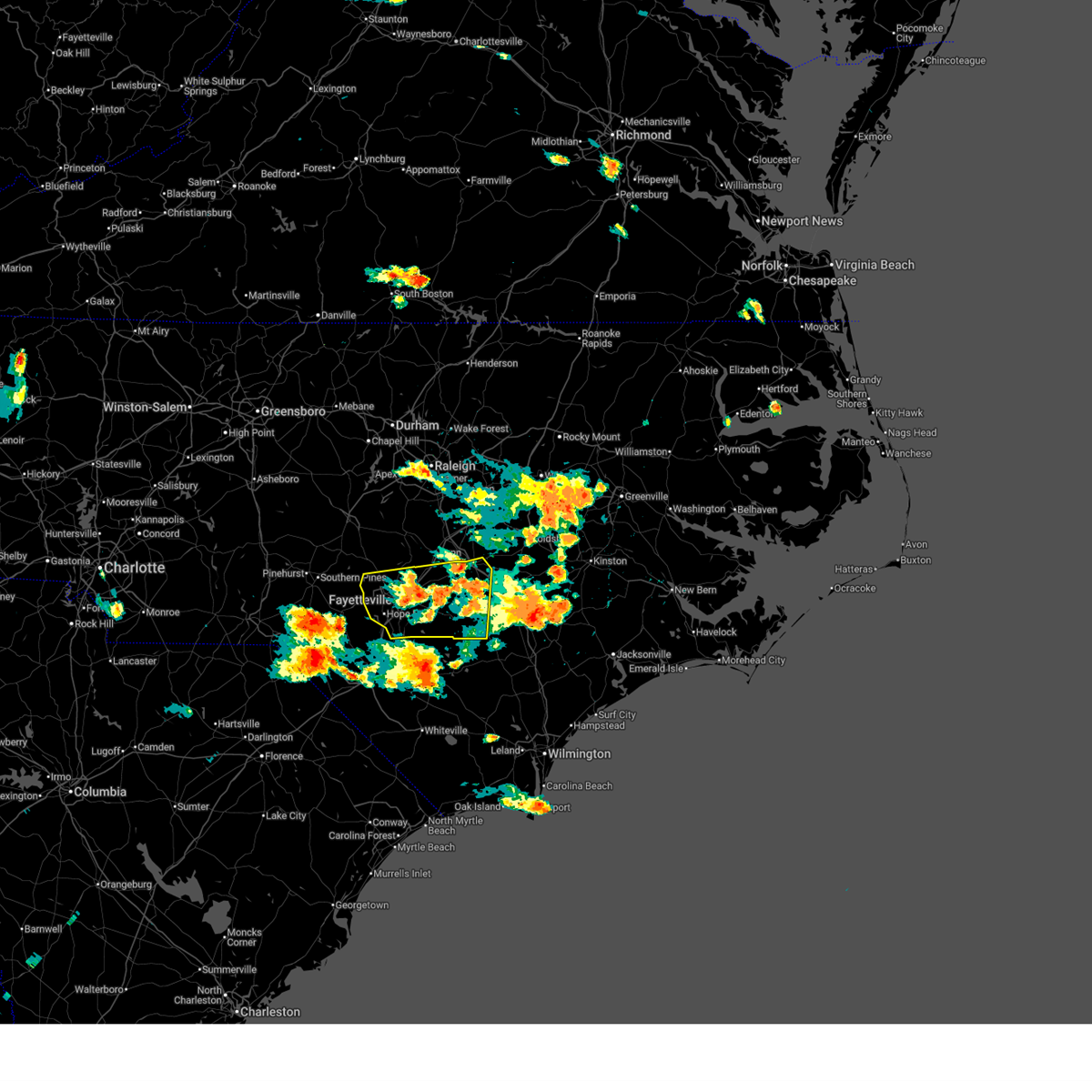 At 323 pm edt, doppler radar continued to indicate a cluster of severe thunderstorms capable of producing quarter size hail and damaging winds in excess of 58 mph. these storms were located along a line extending from 7 miles northeast of raeford to 9 miles northeast of jerome, moving east at 15 mph. locations impacted include, fayetteville, clinton, raeford, fort bragg, pope afb, hope mills, spring lake, eastover, roseboro, stedman, salemburg, bonnie doone, and rockfish.