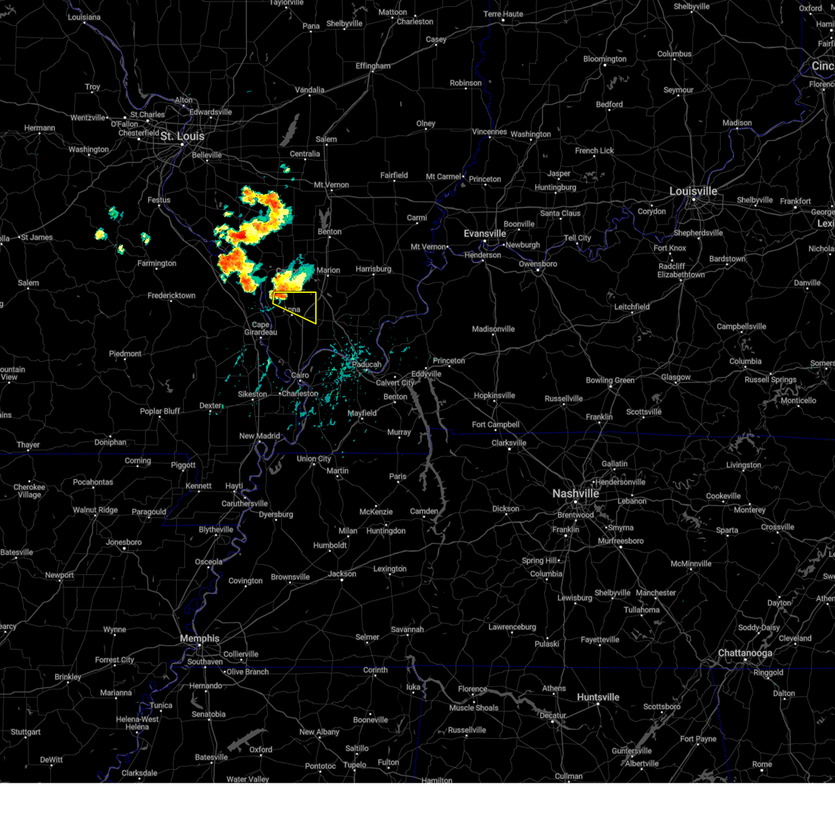 Svrpah the national weather service in paducah has issued a * severe thunderstorm warning for, union county in southern illinois, northwestern johnson county in southern illinois, southwestern williamson county in southern illinois, southeastern jackson county in southern illinois, northwestern alexander county in southern illinois, north central scott county in southeastern missouri, southeastern perry county in southeastern missouri, eastern cape girardeau county in southeastern missouri, * until 115 am cdt. * at 1232 am cdt, severe thunderstorms were located along a line extending from near altenburg to cape girardeau, moving northeast at 55 mph (trained weather spotters). Hazards include 70 mph wind gusts. the cape girardeau airport gusted to 77 mph. Expect considerable tree damage. Damage is likely to mobile homes, roofs, and outbuildings.