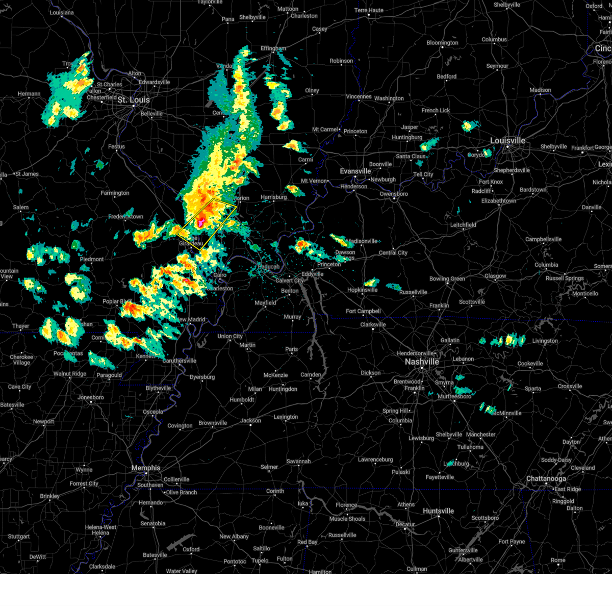 Svrpah the national weather service in paducah has issued a * severe thunderstorm warning for, union county in southern illinois, pulaski county in southern illinois, southern pope county in southern illinois, johnson county in southern illinois, alexander county in southern illinois, massac county in southern illinois, south central williamson county in southern illinois, ballard county in western kentucky, mccracken county in western kentucky, fulton county in western kentucky, southwestern livingston county in western kentucky, carlisle county in western kentucky, hickman county in western kentucky, graves county in western kentucky, mississippi county in southeastern missouri, southeastern new madrid county in southeastern missouri, east central cape girardeau county in southeastern missouri, * until 830 am cdt. * at 741 am cdt, severe thunderstorms were located along a line extending from near cape girardeau to near cairo to near big oak tree state park to near tiptonville, moving northeast at 75 mph (radar indicated). Hazards include 70 mph wind gusts and penny size hail. Expect considerable tree damage. Damage is likely to mobile homes, roofs, and outbuildings.