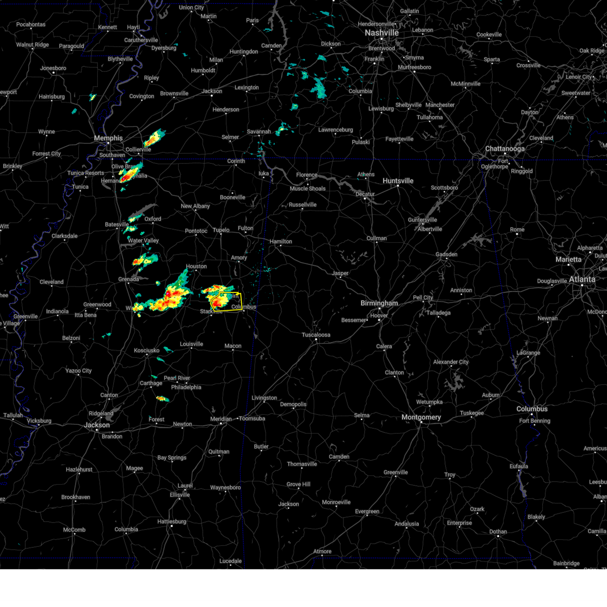 At 840 pm cdt, a severe thunderstorm was located near starkville, moving east at 45 mph (radar indicated). Hazards include 60 mph wind gusts. Expect damage to roofs, siding, and trees. this severe storm will be near, artesia and sessums around 845 pm cdt. bent oak around 850 pm cdt. Columbus around 900 pm cdt.