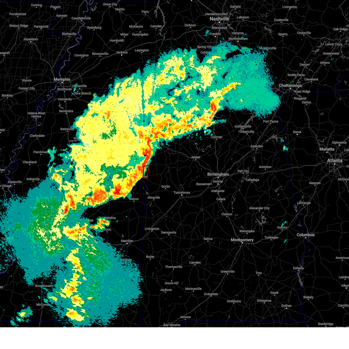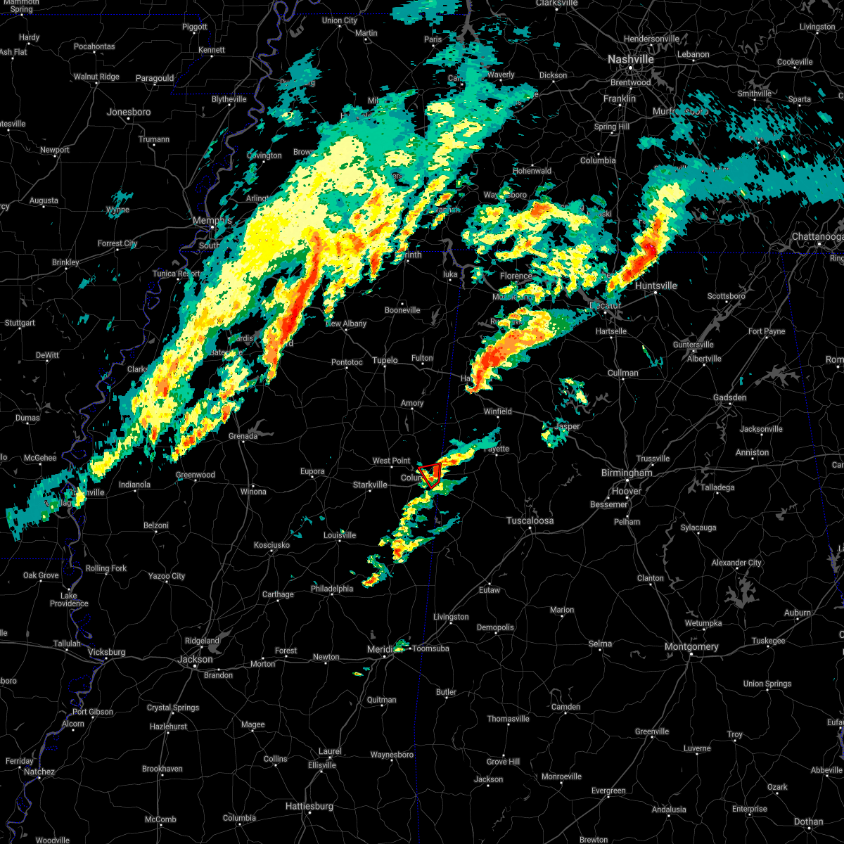 At 1251 am cdt, a severe thunderstorm was located near macon, moving northeast at 35 mph (radar indicated). Hazards include 60 mph wind gusts. Expect damage to roofs, siding, and trees. this severe storm will be near, deerbrook, brooksville, and macon around 1255 am cdt. bigbee valley around 110 am cdt. columbus around 125 am cdt. Steens around 150 am cdt.
