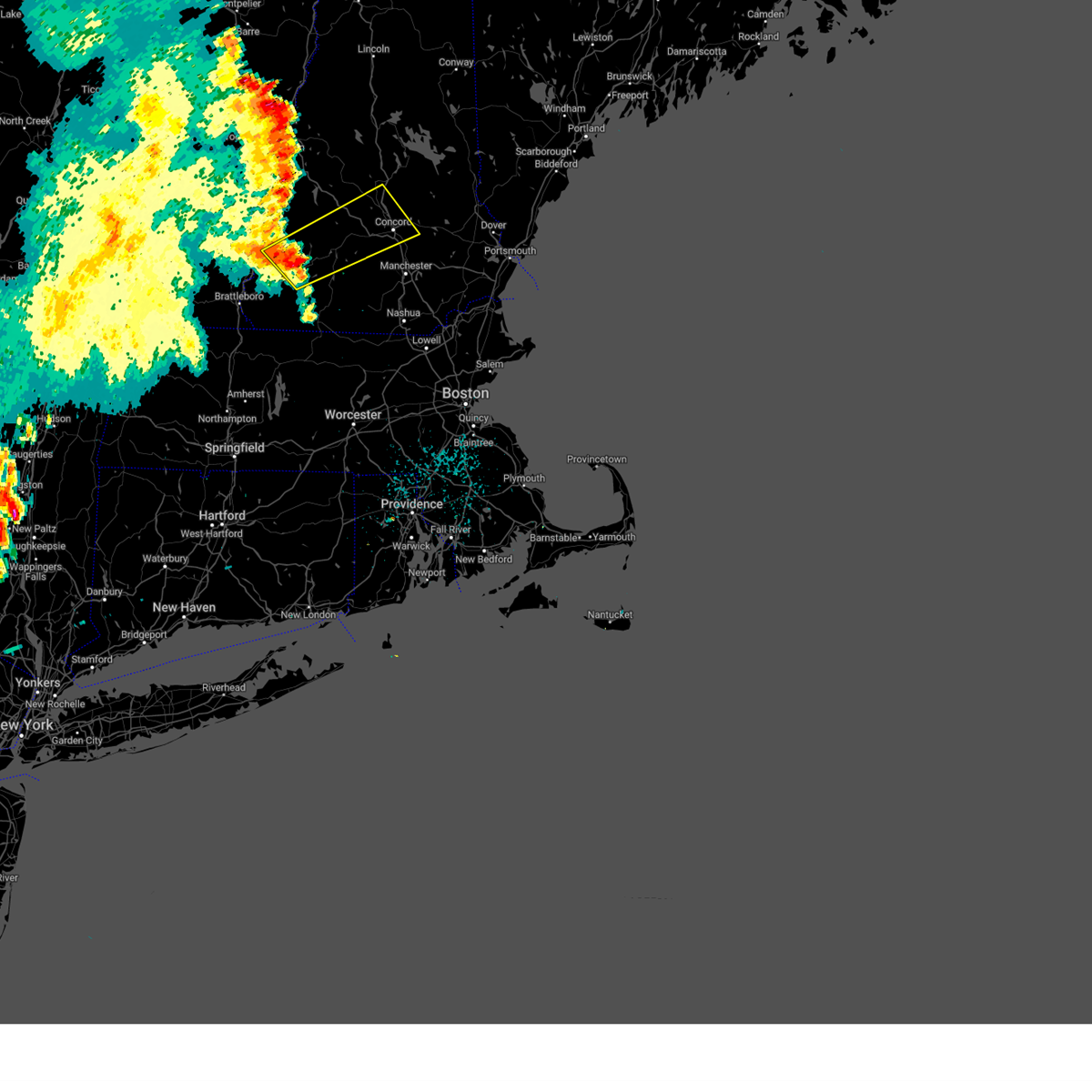 Svrgyx the national weather service in gray maine has issued a * severe thunderstorm warning for, north central hillsborough county in southern new hampshire, southeastern merrimack county in central new hampshire, * until 300 pm edt. * at 215 pm edt, a severe thunderstorm was located over concord, moving south at 15 mph (radar indicated). Hazards include 60 mph wind gusts and quarter size hail. Hail damage to vehicles is expected. Expect wind damage to roofs, siding, and trees.