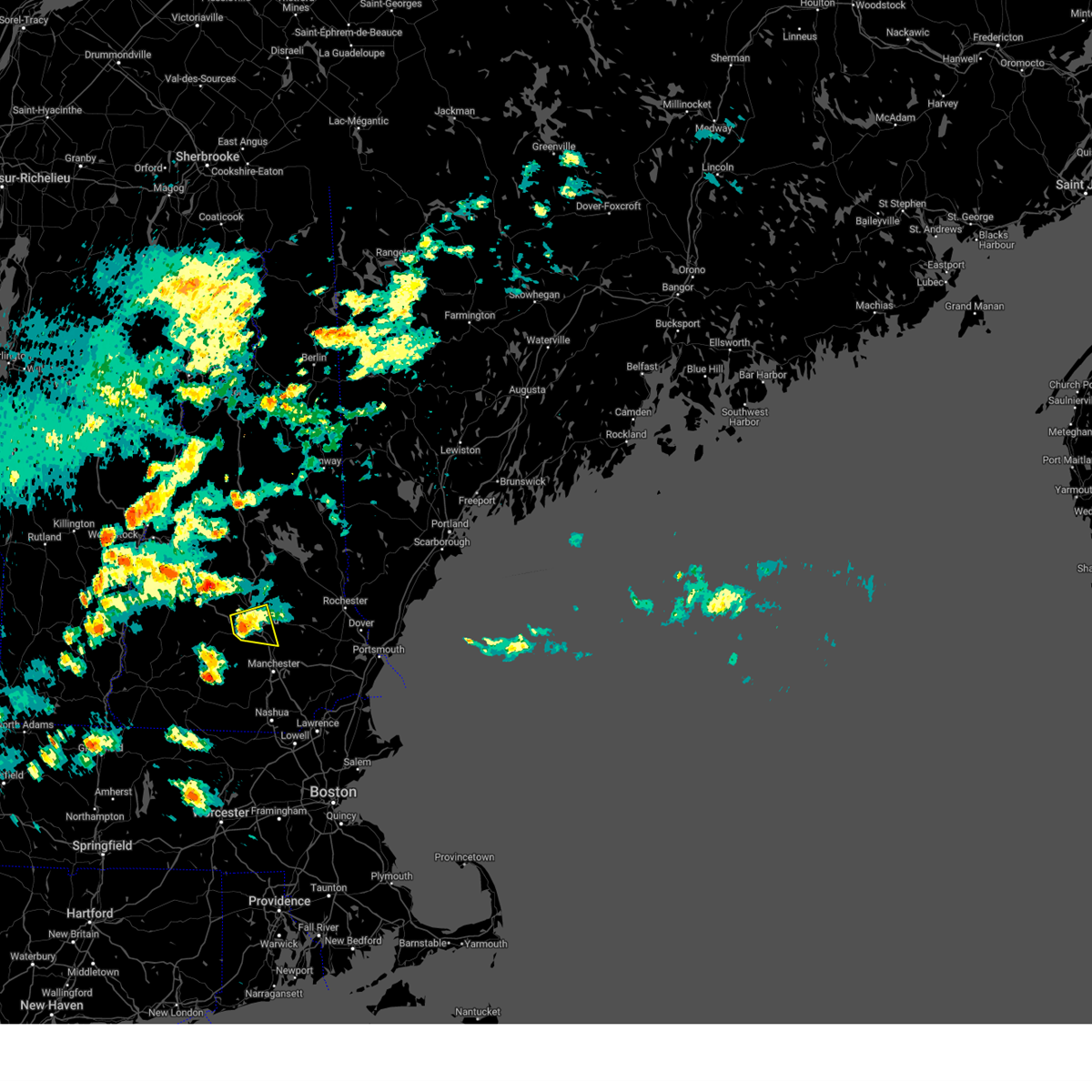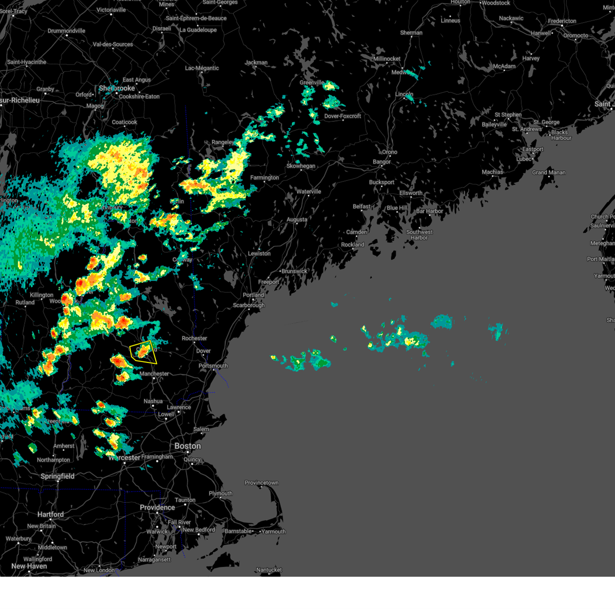At 710 pm edt, doppler radar indicated a severe thunderstorm capable of producing quarter size hail and damaging winds in excess of 60 mph. this storm was located near gilmanton, or 7 miles south of laconia, moving southeast at 30 mph. locations impacted include, northeastern concord, franklin, loudon, alton, barnstead, gilmanton, canterbury, belmont, chichester, sanbornton, tilton, northfield, pittsfield and pembroke.