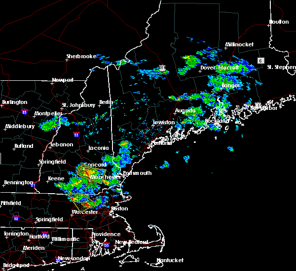 At 654 pm edt, a severe thunderstorm was located near hooksett, or near manchester, moving northeast at 20 mph (radar indicated). Hazards include 60 mph wind gusts and quarter size hail. Hail damage to vehicles is expected. Expect wind damage to roofs, siding, and trees.