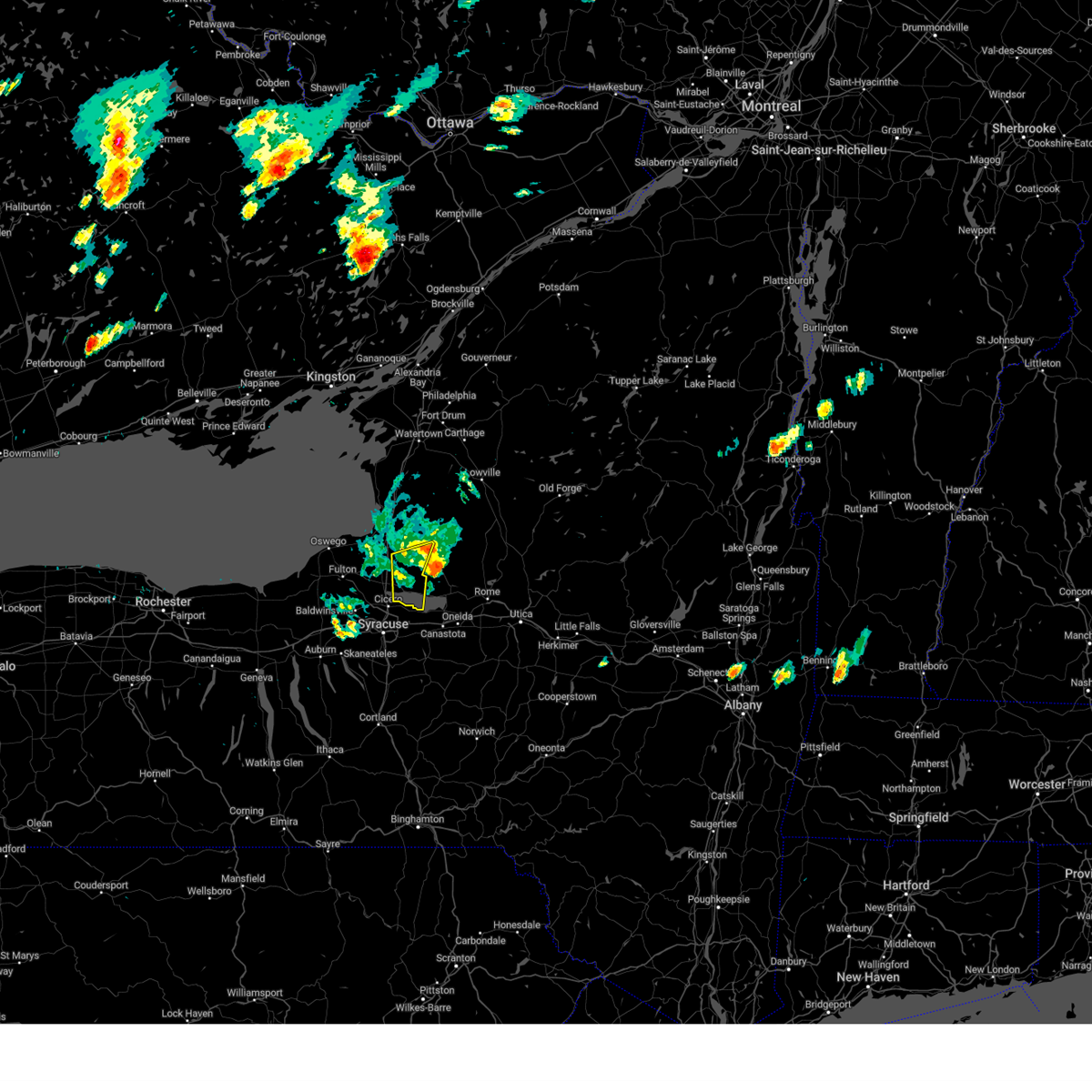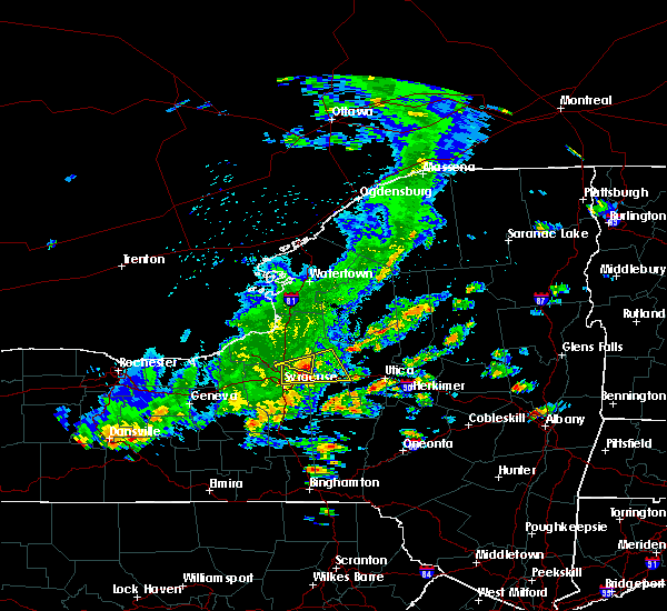 At 1230 am edt, a severe thunderstorm was located near clyde, or 11 miles north of seneca falls, moving northeast at 65 mph (radar indicated). Hazards include 60 mph wind gusts. Expect wind damage to trees and power lines. locations impacted include, fulton, clyde, central square, weedsport, cato, hastings, constantia and west monroe. this includes the following highways, interstate 90 near exit 40. Interstate 81 near exit 32.