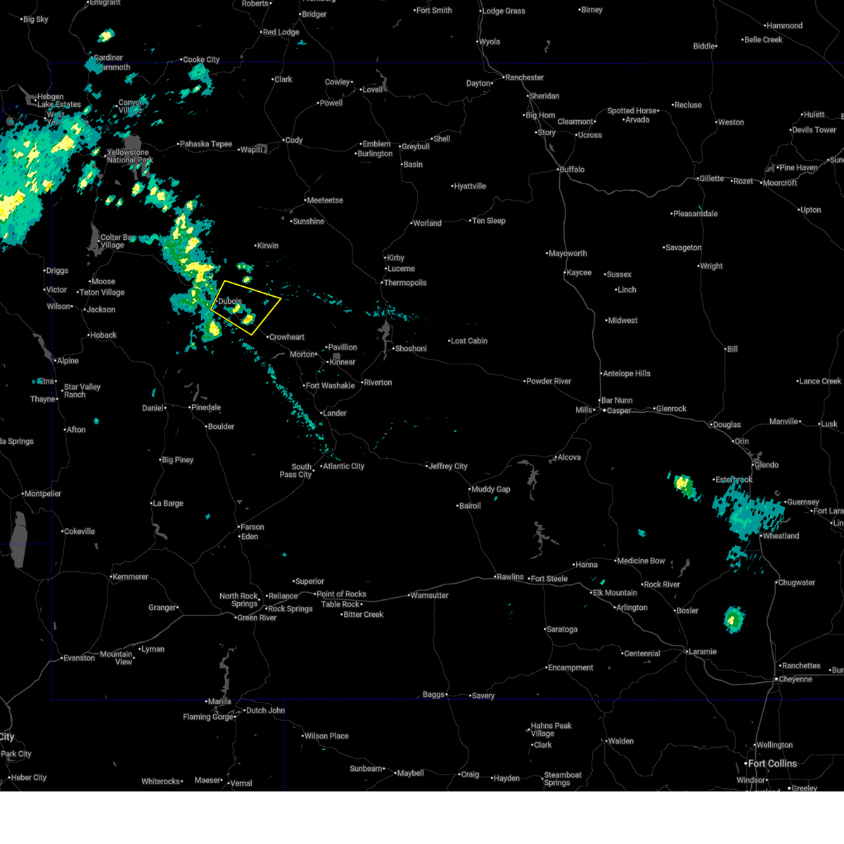 At 359 pm mdt, a severe thunderstorm was located over dubois, moving northeast at 40 mph (radar indicated). Hazards include 60 mph wind gusts and quarter size hail. Hail damage to vehicles is expected. expect wind damage to roofs, siding, and trees. This severe thunderstorm will remain over mainly rural areas of north central sublette and northwestern fremont counties, including the following locations: green river lake campground, crowheart elementary school and whiskey grove campground.