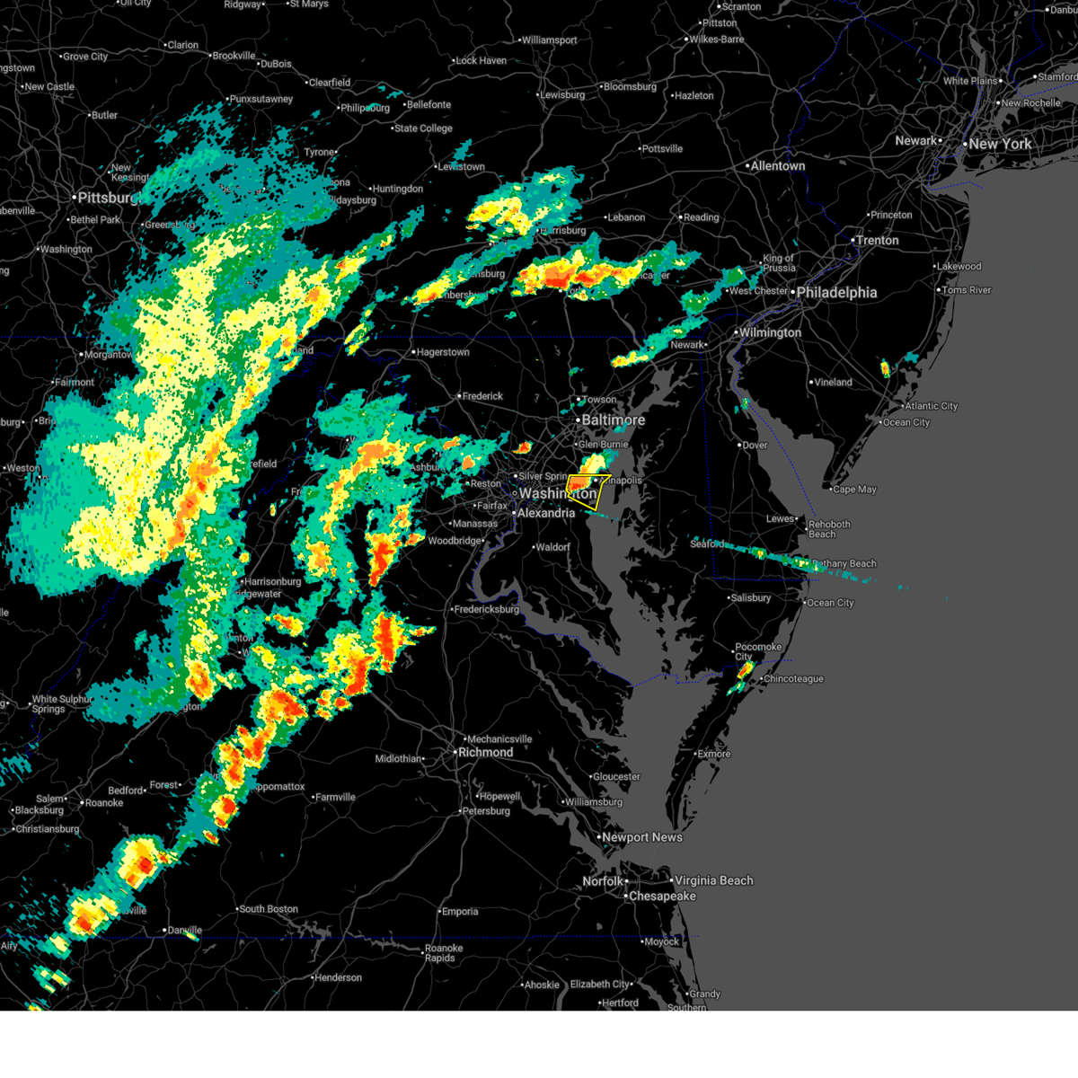 Svrlwx the national weather service in sterling virginia has issued a * severe thunderstorm warning for, the district of columbia, southern baltimore city in northern maryland, western anne arundel county in central maryland, southeastern howard county in central maryland, southeastern montgomery county in central maryland, northwestern calvert county in southern maryland, southern baltimore county in northern maryland, prince georges county in central maryland, southeastern arlington county in northern virginia, east central fairfax county in northern virginia, the city of alexandria in northern virginia, * until 415 pm edt. * at 318 pm edt, a severe thunderstorm was located over american university, or near bethesda, moving northeast at 20 mph (radar indicated). Hazards include 60 mph wind gusts. Damaging winds will cause some trees and large branches to fall. this could injure those outdoors, as well as damage homes and vehicles. roadways may become blocked by downed trees. localized power outages are possible. Unsecured light objects may become projectiles.