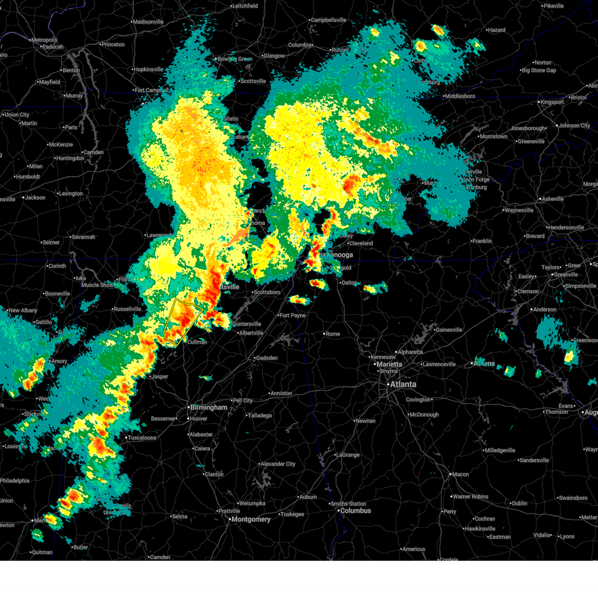 At 154 pm cdt, severe thunderstorms were located along a line extending from near hartselle to 6 miles west of dodge city to parrish, moving east at 55 mph. multiple trees reported down in western cullman (emergency management). Hazards include 70 mph wind gusts. Expect considerable tree damage. damage is likely to mobile homes, roofs, and outbuildings. Locations impacted include, southern huntsville, decatur, albertville, cullman, hartselle, boaz, guntersville, arab, redstone arsenal, and hanceville.