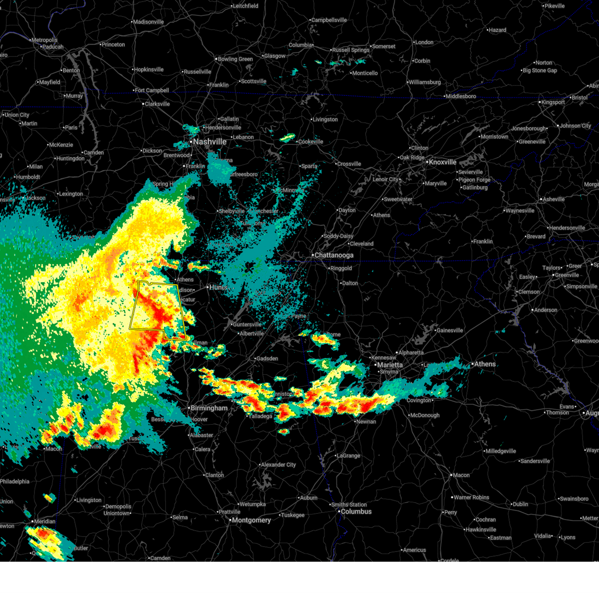 At 204 pm cdt, severe thunderstorms were located along a line extending from near tanner to 7 miles southwest of falkville to near camp mcdowell, moving east at 45 mph (radar indicated). Hazards include 60 mph wind gusts. Expect damage to roofs, siding, and trees. Locations impacted include, decatur, madison, athens, hartselle, priceville, trinity, falkville, ardmore, tanner, and huntsville international airport.