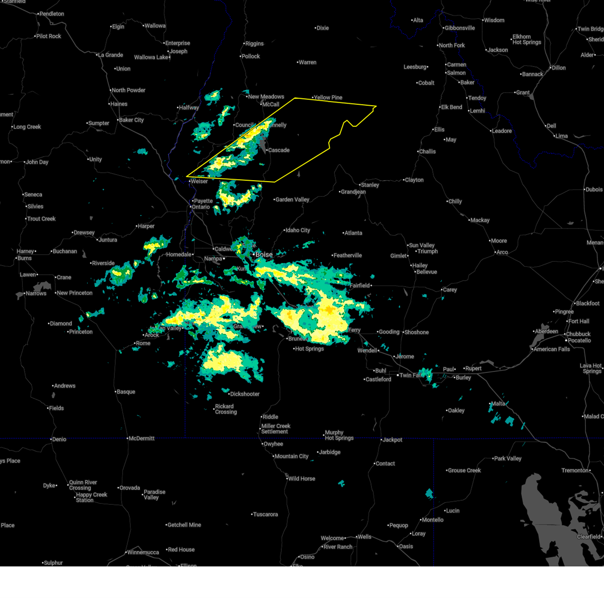 Svrboi the national weather service in boise has issued a * severe thunderstorm warning for, southwestern valley county in southwestern idaho, northeastern gem county in southwestern idaho, southeastern adams county in southwestern idaho, eastern washington county in southwestern idaho, * until 815 pm mdt.. * at 738 pm mdt, severe thunderstorms were located along a line extending from star butte to near boiling springs, moving north at 45 mph (radar indicated). Hazards include 60 mph wind gusts. Expect damage to roofs, siding, and trees. severe thunderstorms will be near, cascade, four bit summit, granite peak, and cascade reservoir around 740 pm mdt. indian valley and horsethief reservoir around 750 pm mdt. goodrich, tamarack ski area, indian mountain, and mesa around 800 pm mdt. Council, donnelly, and council mountain around 810 pm mdt.