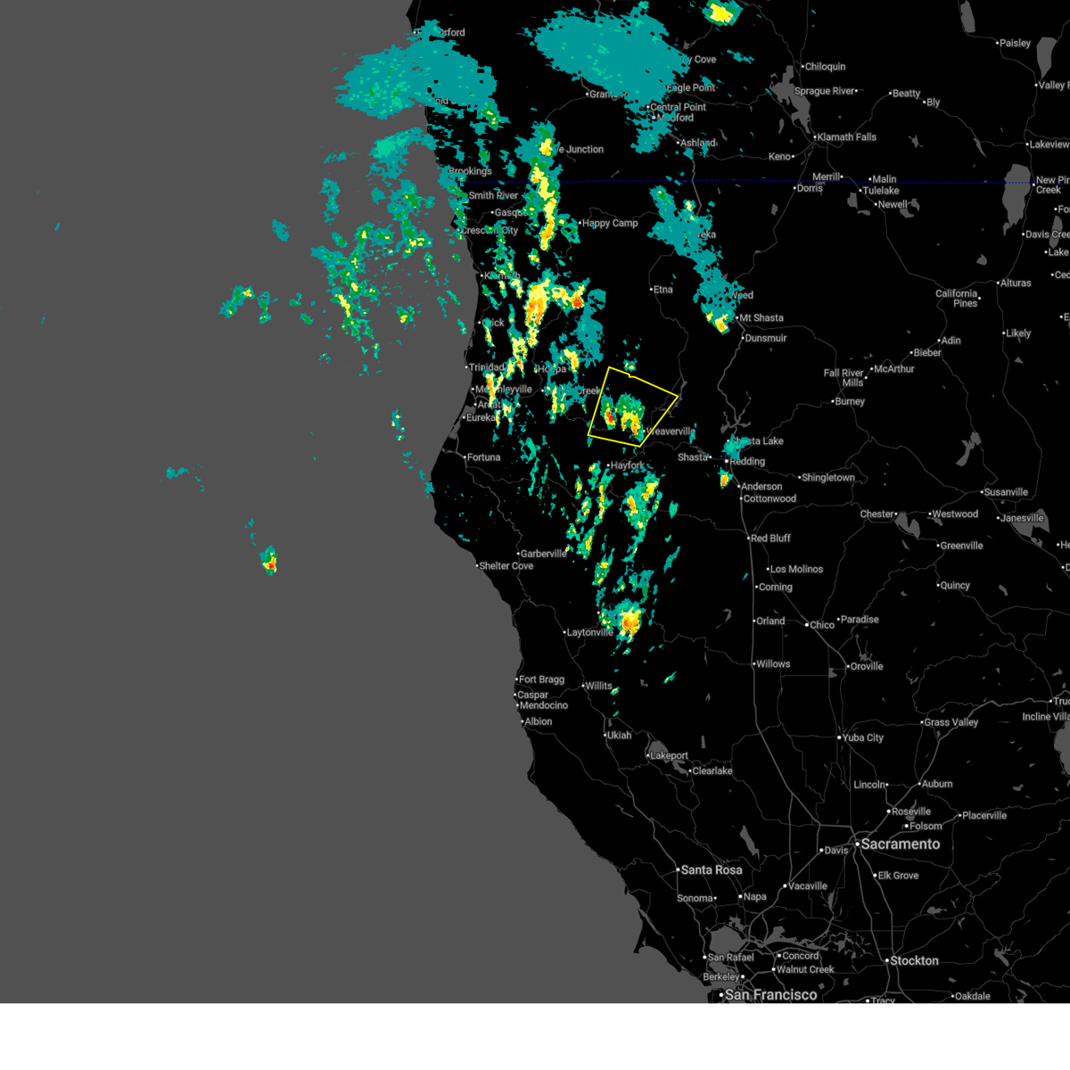 At 428 pm pdt, a severe thunderstorm was located over douglas city, or near weaverville, and is nearly stationary (radar indicated). Hazards include 60 mph wind gusts and quarter size hail. Hail damage to vehicles is expected. expect wind damage to roofs, siding, and trees. Locations impacted include, weaverville, hayfork, junction city, douglas city and lewiston.