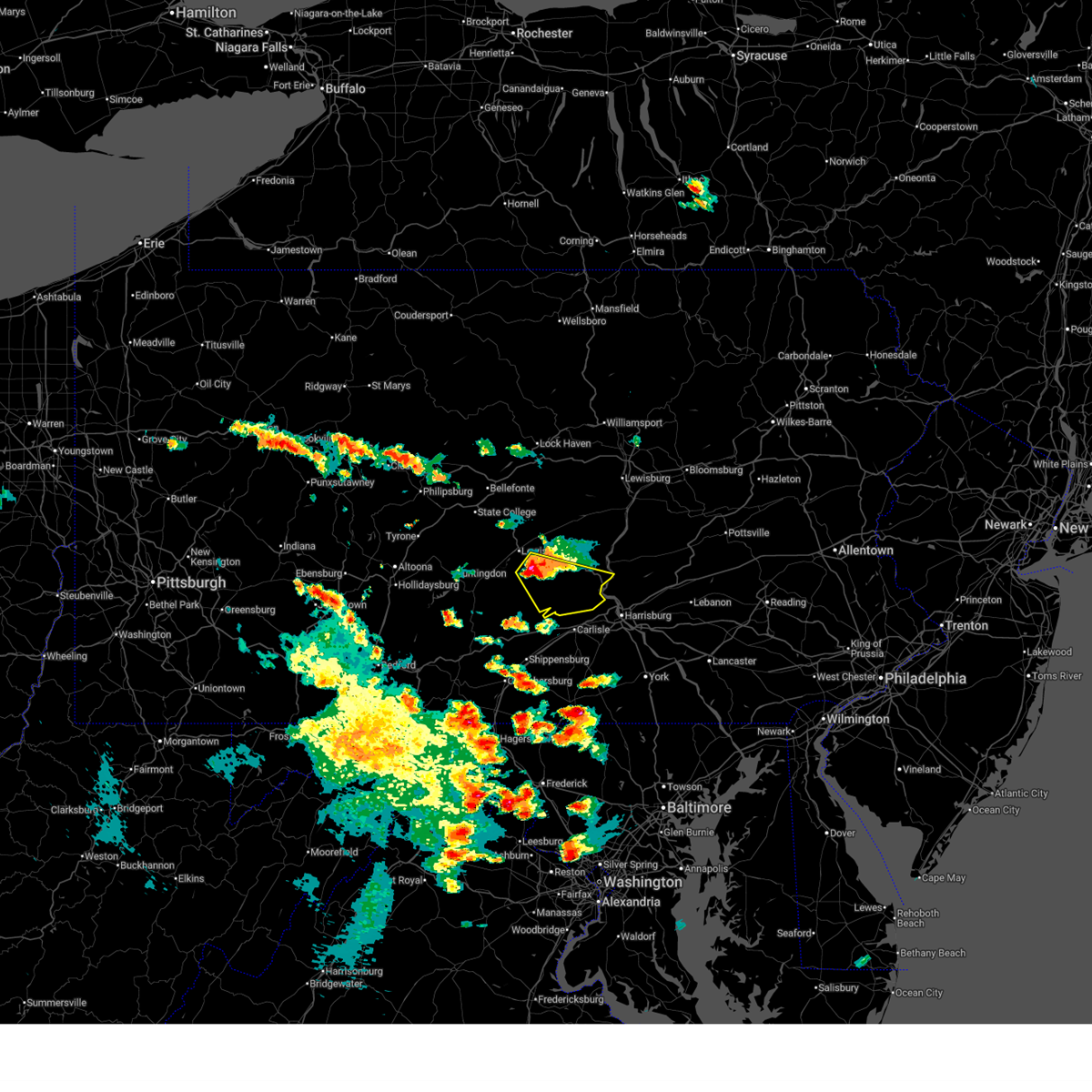 At 832 pm edt, doppler radar indicated a line of severe thunderstorms capable of producing damaging winds in excess of 60 mph. these storms were located along a line extending from rock springs to near huntingdon to near trough creek state park. these storms were nearly stationary. locations impacted include, lewistown, alfarata, belleville, belltown, big spring state park, blacklog, burnham, colonel denning state park, duncannon, east rutherford, highland park, honey grove, ickesburg, juniata terrace, loysville, mcalisterville, mexico, milroy, mount union and new bloomfield.