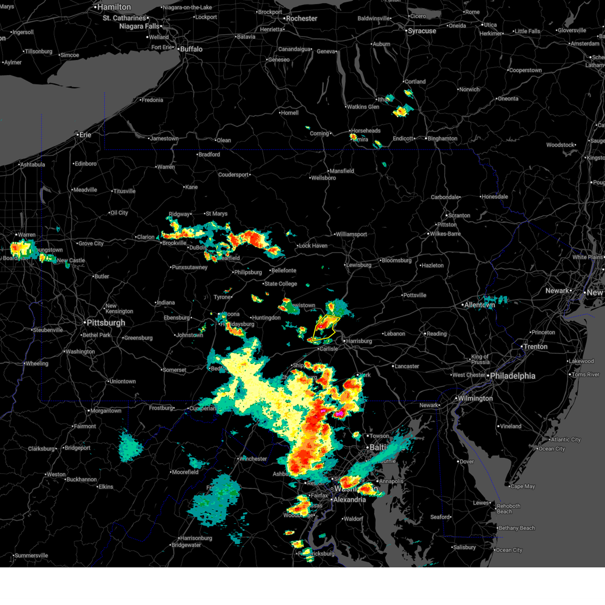 At 350 pm edt, a severe thunderstorm was located over carlisle, moving east at 45 mph (radar indicated). Hazards include 60 mph wind gusts. Expect damage to trees and power lines. Locations impacted include, carlisle, mechanicsburg, newville, bloserville, duncannon, wertzville, plainfield, hogestown, new kingstown and schlusser.