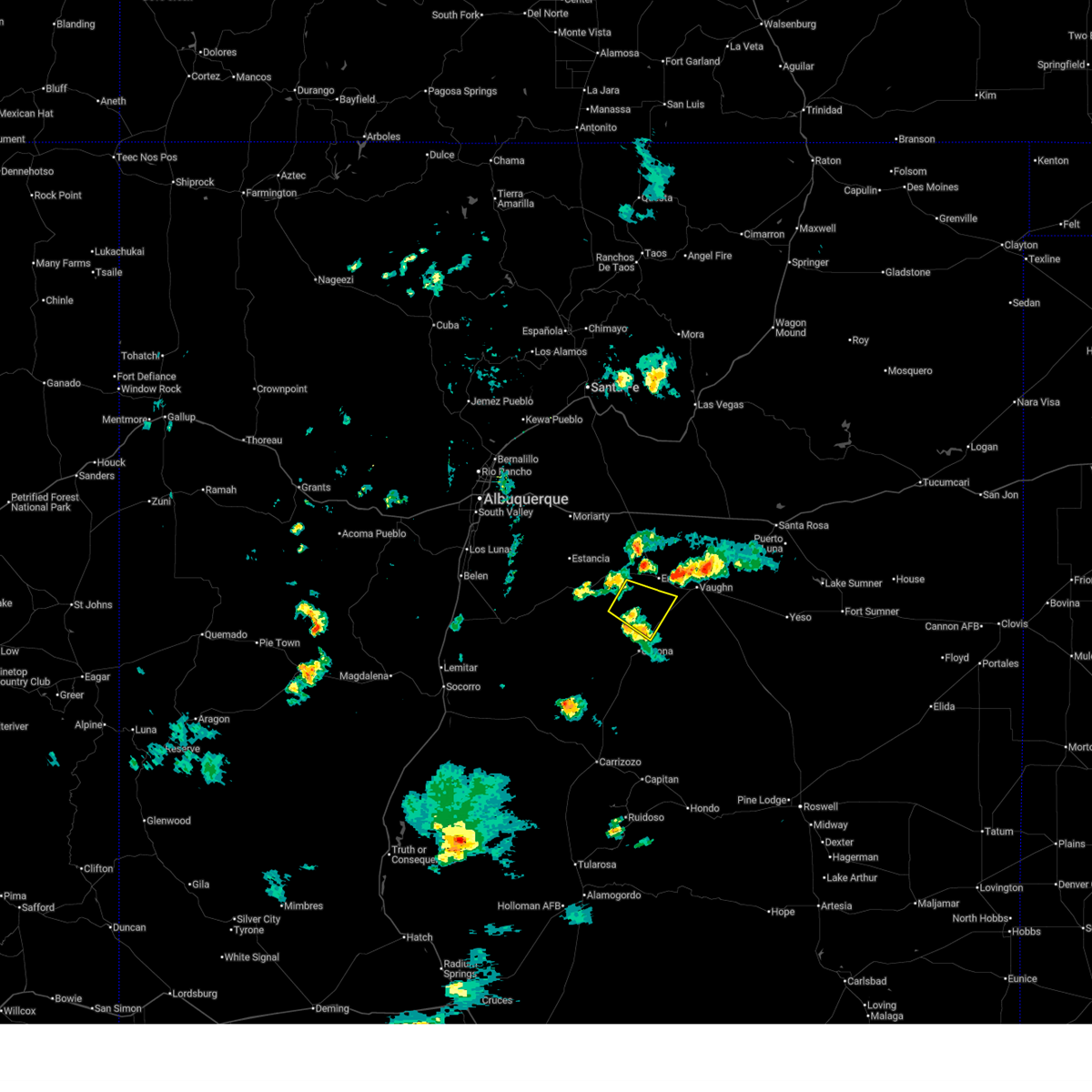 The national weather service in albuquerque has issued a * severe thunderstorm warning for. west central guadalupe county in east central new mexico. east central torrance county in central new mexico. until 745 pm mdt. At 656 pm mdt, a severe thunderstorm was located 14 miles northeast.