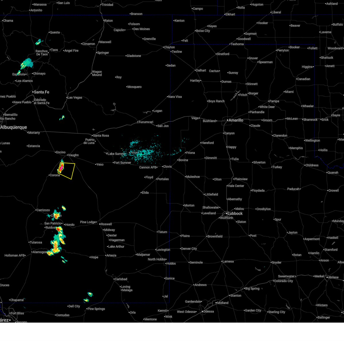 At 209 pm mdt, a severe thunderstorm was located 14 miles northeast of corona, moving northeast at 30 mph (radar indicated). Hazards include 60 mph wind gusts and quarter size hail. Hail damage to vehicles is expected. expect wind damage to roofs, siding and trees. locations impacted include, vaughn, encino and duran. This includes highway 285 between mile markers 202 and 204.