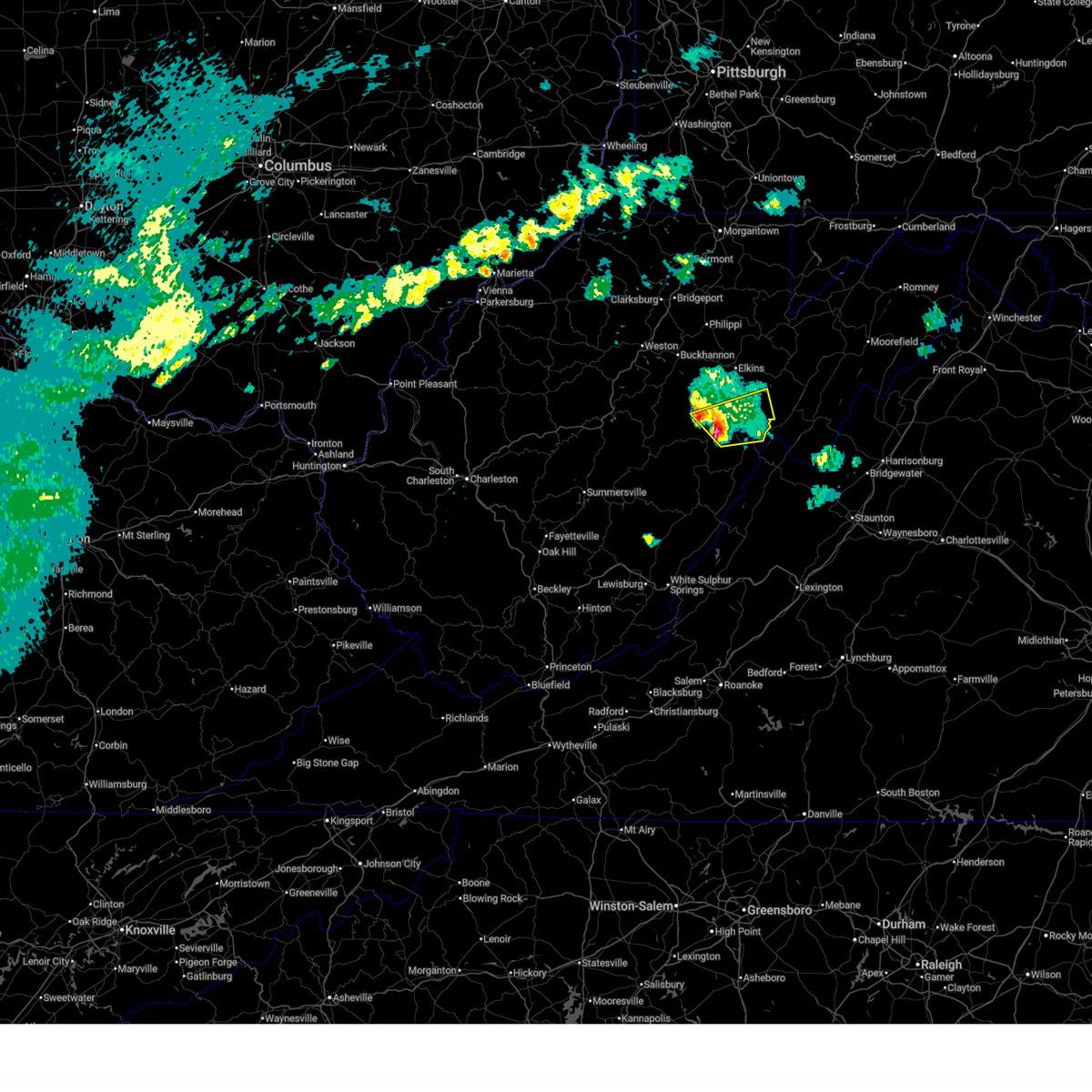 At 738 pm edt, a severe thunderstorm was located near dailey, or 10 miles southwest of elkins, moving east at 30 mph (radar indicated). Hazards include 70 mph wind gusts. Expect considerable tree damage. damage is likely to mobile homes, roofs, and outbuildings. locations impacted include, elkins, mill creek, dailey, beverly, durbin, huttonsville, cheat bridge, bartow and glady.