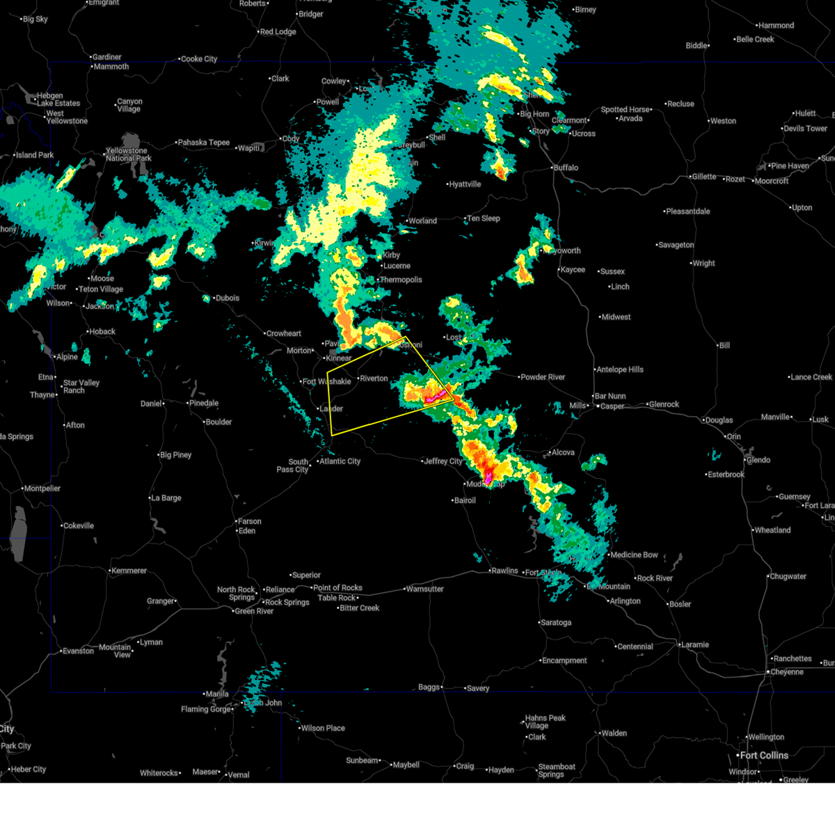 At 242 pm mdt, a severe thunderstorm was located over sinks canyon state park, which is 8 miles south of lander, moving northeast at 55 mph (radar indicated). Hazards include 60 mph wind gusts. Expect damage to roofs, siding, and trees. this severe thunderstorm will be near, lander and milford around 250 pm mdt. hudson around 300 pm mdt. arapahoe around 305 pm mdt. Other locations impacted by this severe thunderstorm include atlantic city, sinks canyon campground, and lander hunt field.