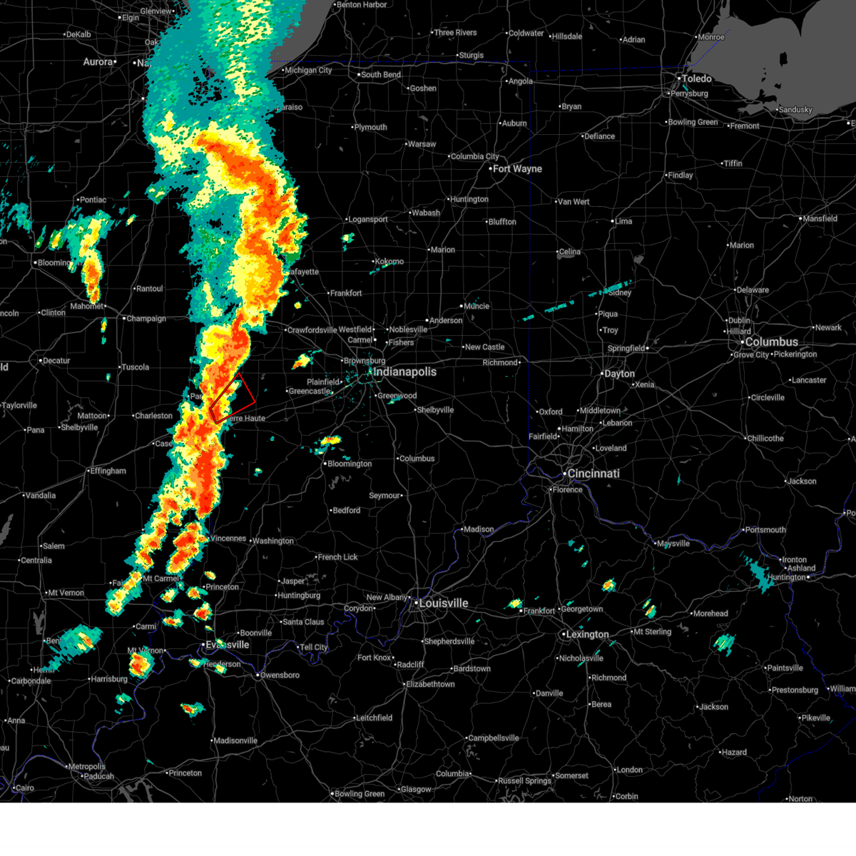 At 443 pm edt, a severe thunderstorm capable of producing a tornado was located over terre haute, moving east at 40 mph (radar indicated rotation). Hazards include tornado and ping pong ball size hail. Flying debris will be dangerous to those caught without shelter. mobile homes will be damaged or destroyed. damage to roofs, windows, and vehicles will occur. tree damage is likely. locations impacted include, terre haute, brazil, west terre haute, seelyville, knightsville, harmony, staunton, carbon, center point, riley, fontanet, north terre haute, and indiana state university. This includes interstate 70 between mile markers 4 and 29.