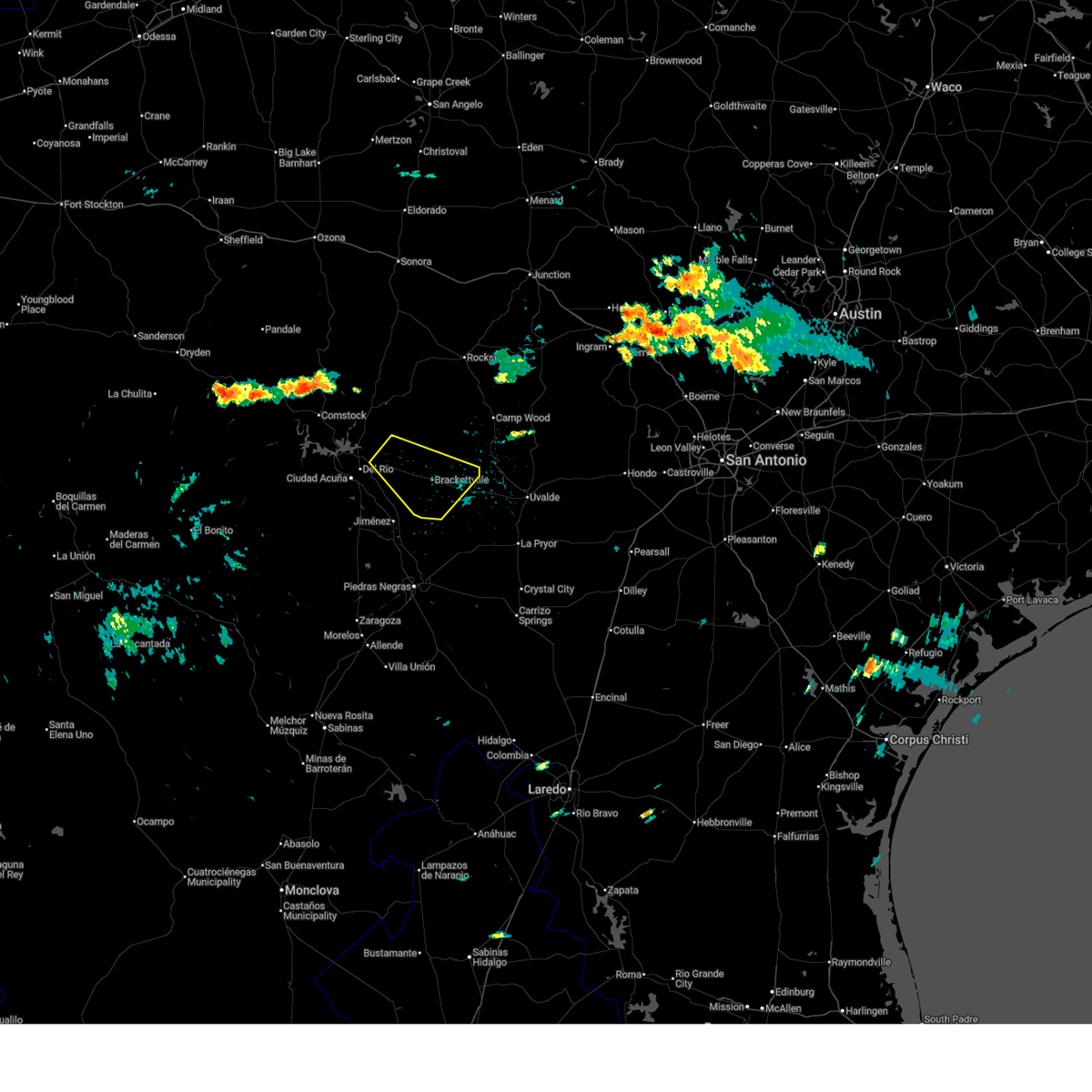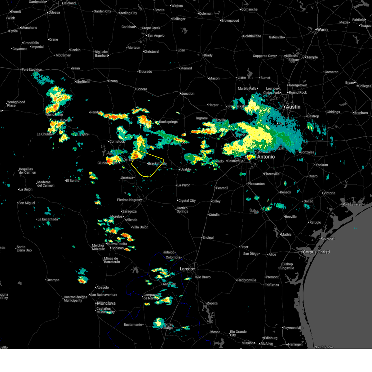 At 1115 pm cdt, a severe thunderstorm was located over brackettville, moving east at 35 mph (radar indicated). Hazards include 70 mph wind gusts and quarter size hail. Hail damage to vehicles is expected. expect considerable tree damage. wind damage is also likely to mobile homes, roofs, and outbuildings. Locations impacted include, brackettville, alamo village, turkey mountain, and fort clark springs.