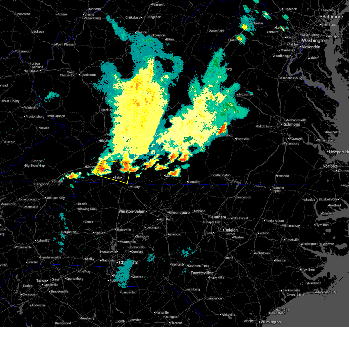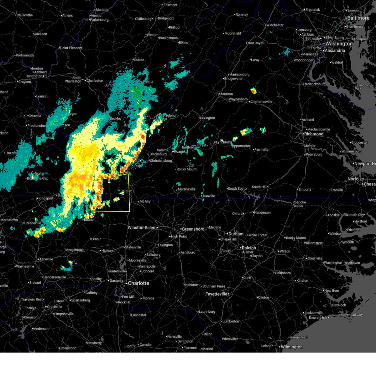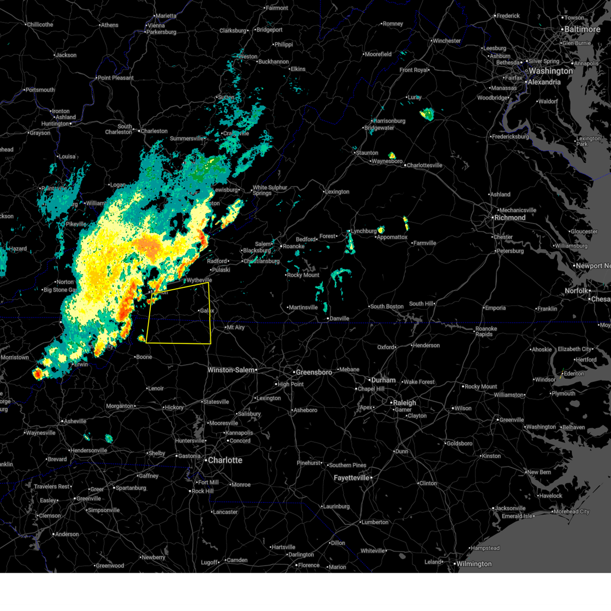 The severe thunderstorm warning for yadkin, surry, stokes, wilkes, watauga, alleghany, ashe, southwestern patrick, southeastern grayson and carroll counties and the city of galax will expire at 1030 pm edt, the storms which prompted the warning have weakened below severe limits, and no longer pose an immediate threat to life or property. therefore the warning will be allowed to expire. however gusty winds and heavy rain are still possible with these thunderstorms. a severe thunderstorm watch remains in effect until 1100 pm edt for north carolina and virginia.
