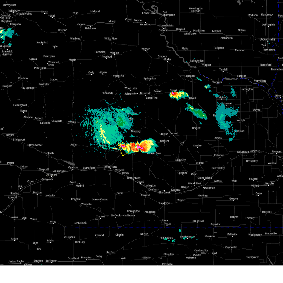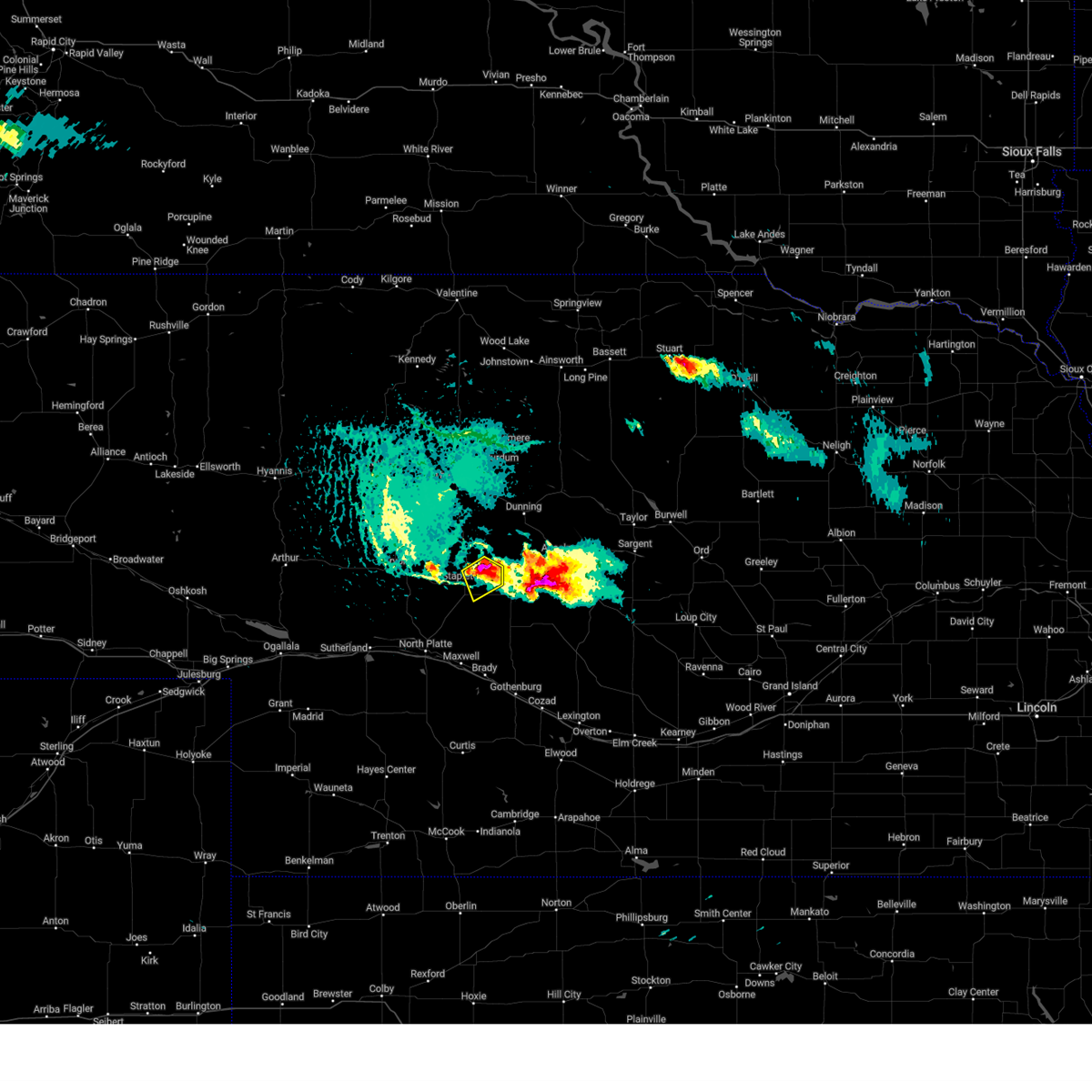 At 814 pm cdt, severe thunderstorms were located along a line extending from near arnold to 16 miles west of callaway to near maxwell to near north platte, moving south at 35 mph (radar indicated). Hazards include golf ball size hail and 70 mph wind gusts. People and animals outdoors will be injured. expect hail damage to roofs, siding, windows and vehicles. expect considerable tree damage. wind damage is also likely to mobile homes, roofs and outbuildings. this includes the following highways, highway 92 between mile markers 217 and 254. highway 97 between mile markers 1 and 25. interstate 80 in nebraska between mile markers 166 and 199. highway 83 between mile markers 77 and 113. Locations impacted include, etna, logan, brady, gandy, maxwell, north platte, stapleton, north platte airport, hoagland, keith, arnold, birdwood, finchville and lake maloney state recreation area.