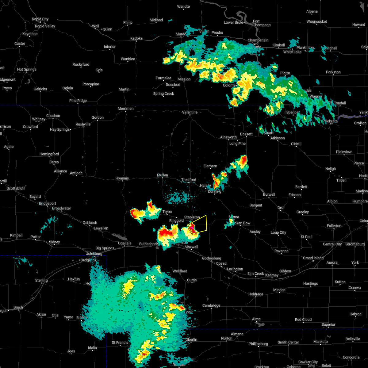 At 840 pm cdt, a severe thunderstorm was located 11 miles south of ringgold, or 14 miles north of north platte, moving northeast at 35 mph (radar indicated). Hazards include 60 mph wind gusts and half dollar size hail. Hail damage to vehicles is expected. expect wind damage to roofs, siding, and trees. locations impacted include, stapleton, gandy, ringgold, logan, tarboz lake, shanklin bluff, hoagland, and brown lake. this includes the following highways, highway 92 between mile markers 211 and 237. highway 97 between mile markers 5 and 22. Highway 83 between mile markers 98 and 128.
