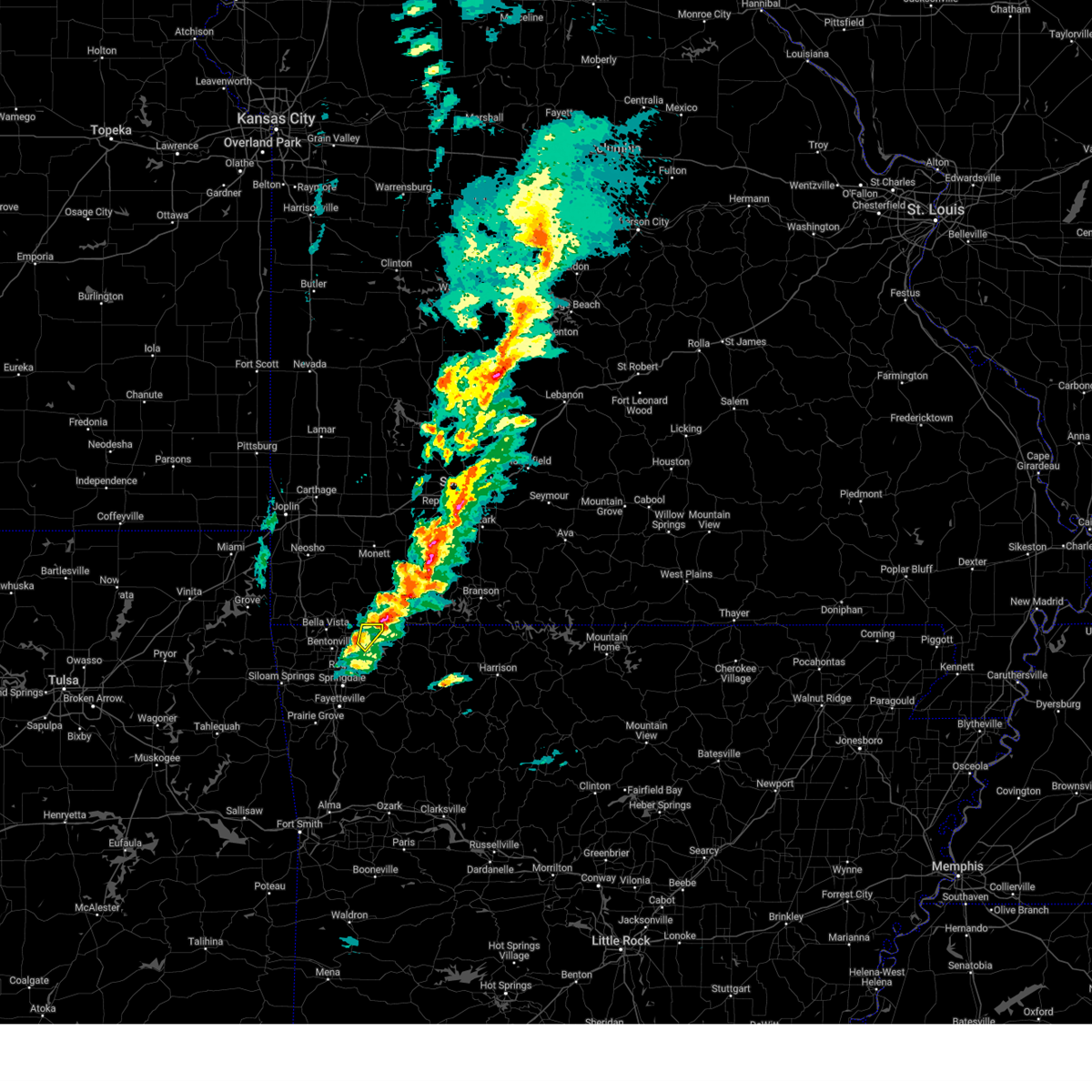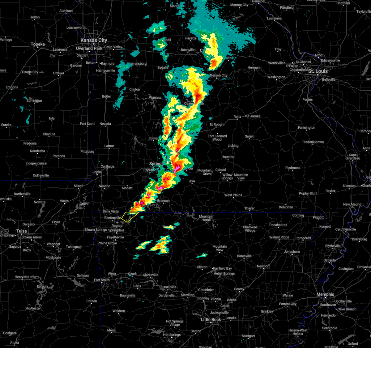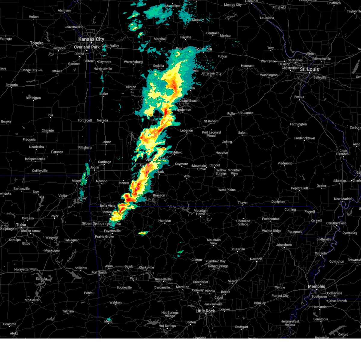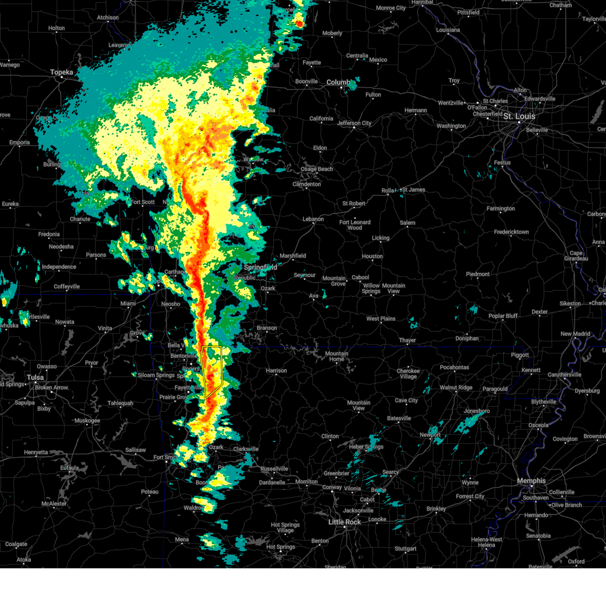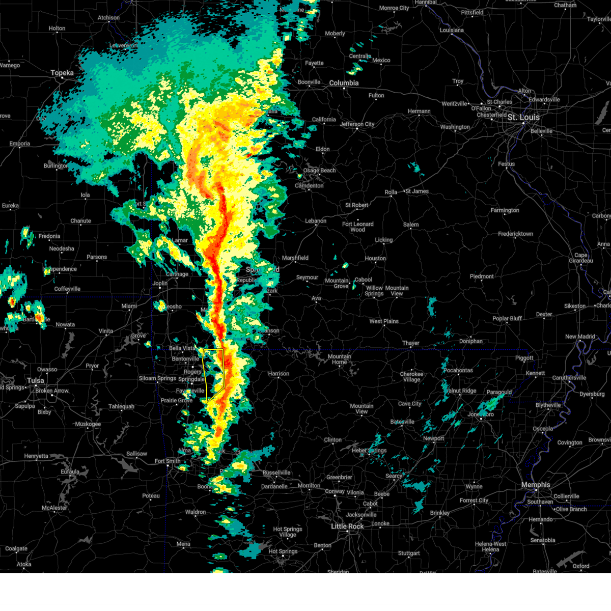 At 1240 am cdt, a severe thunderstorm capable of producing a tornado was located 3 miles southwest of bella vista, moving east at 50 mph (radar indicated rotation). Hazards include tornado. Flying debris will be dangerous to those caught without shelter. mobile homes will be damaged or destroyed. damage to roofs, windows, and vehicles will occur. tree damage is likely. Locations in or near the path include, rogers, bentonville, bella vista, lowell, pea ridge, highfill, garfield, gateway, hiwasse, miller, centerton, avoca, larue, bland, walnut hill, hill top, vaughn, this includes interstate 49 between mile markers 81 and 84, and between mile markers 86 and 93.