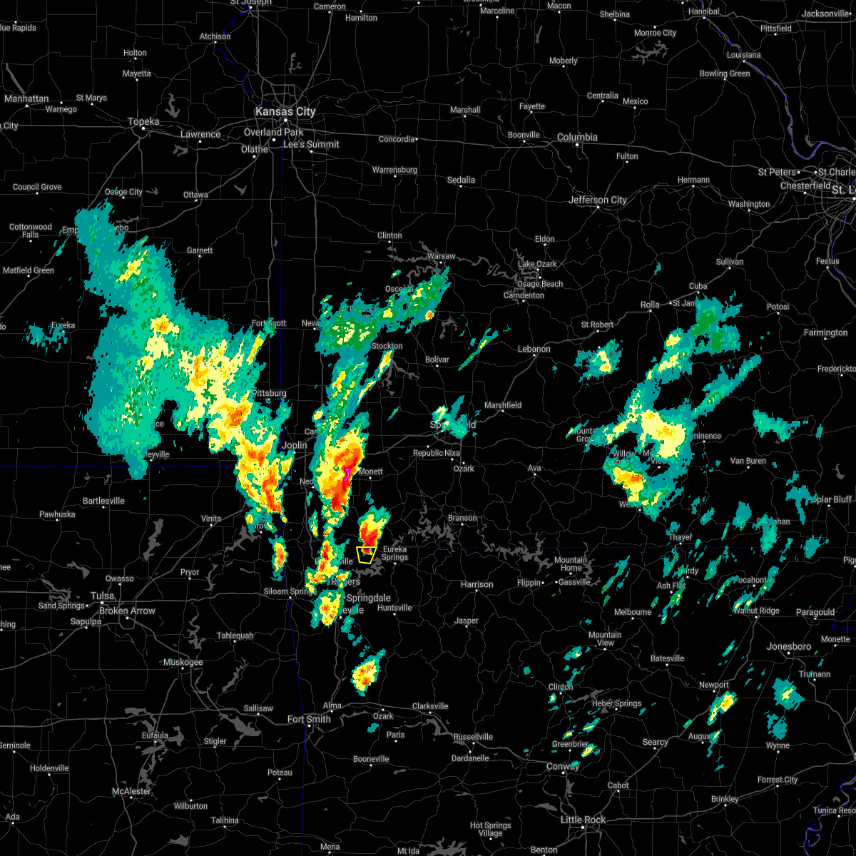 At 135 am cdt, a severe thunderstorm was located 7 miles west of eureka springs, moving northeast at 55 mph (radar indicated). Hazards include 60 mph wind gusts and quarter size hail. Hail damage to vehicles is expected. expect wind damage to roofs, siding, and trees. Locations in or near the path include, war eagle, rogers, hill top, beaver lake, walnut hill, monte ne, larue, avoca, lowell, hobbs state park, best, clifty, lookout, bentonville, pea ridge, springdale, this includes interstate 49 between mile markers 77 and 91.