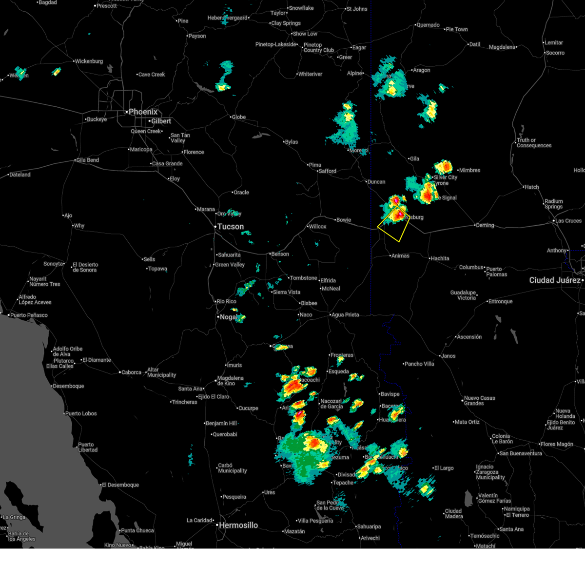 At 218 pm mdt, a severe thunderstorm was located near white signal, or 19 miles south of silver city, moving northeast at 25 mph (radar indicated). Hazards include ping pong ball size hail and 60 mph wind gusts. People and animals outdoors will be injured. expect hail damage to roofs, siding, windows and vehicles. expect wind damage to roofs, siding and trees. by 225 pm, the storm will cross interstate 10 between mile markers 25 and 30. Locations impacted include, lordsburg, animas, playas, separ, shakespeare, windmill.