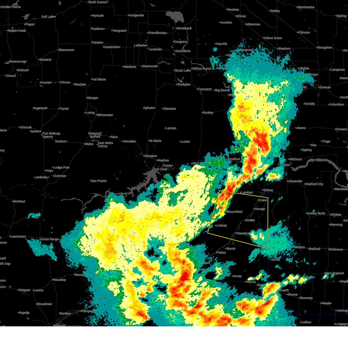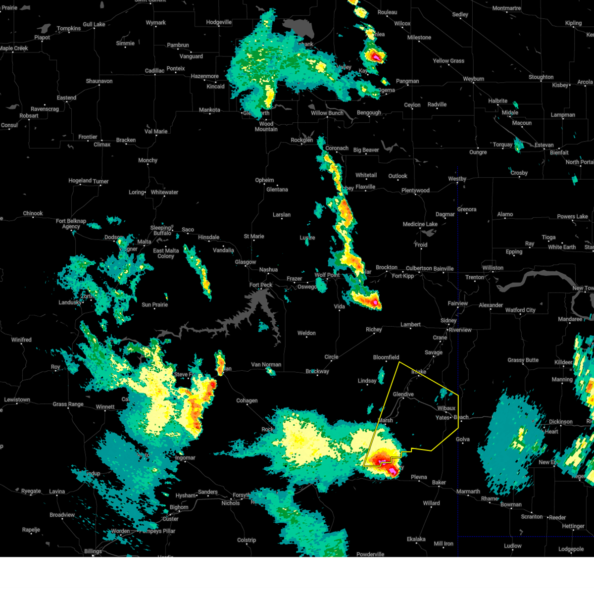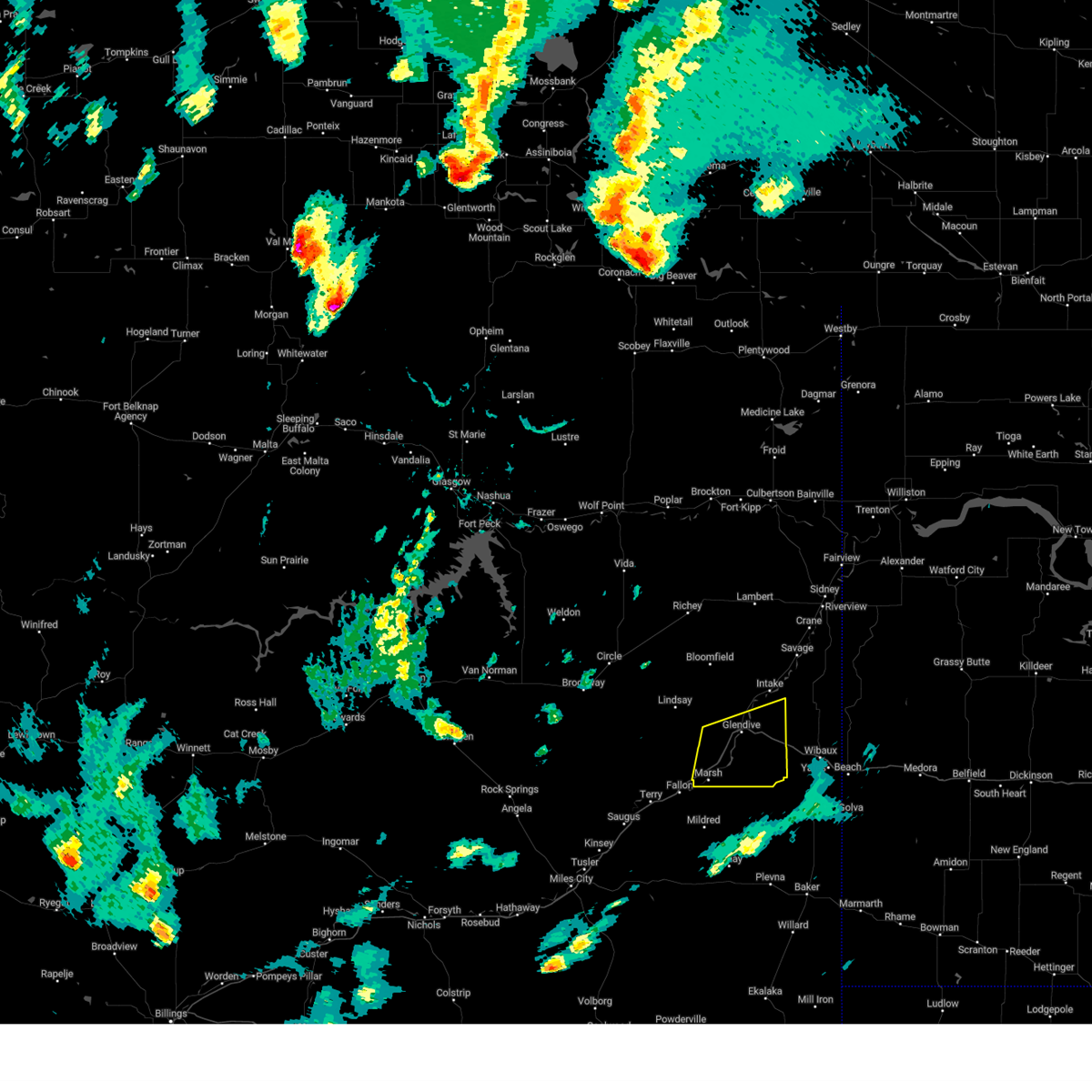 At 642 pm mdt, severe thunderstorms were located along a line extending from lindsay to 13 miles west of wibaux, and moving north at 45 mph (radar indicated). Hazards include 60 mph wind gusts. Expect damage to roofs. siding and trees. severe thunderstorms will be near, glendive around 655 pm. mdt. intake and bloomfield around 705 pm mdt. savage around 715 pm mdt. lambert around 730 pm mdt. Other locations in the warning include stipek, burns, midway, enid, crane and wooley.