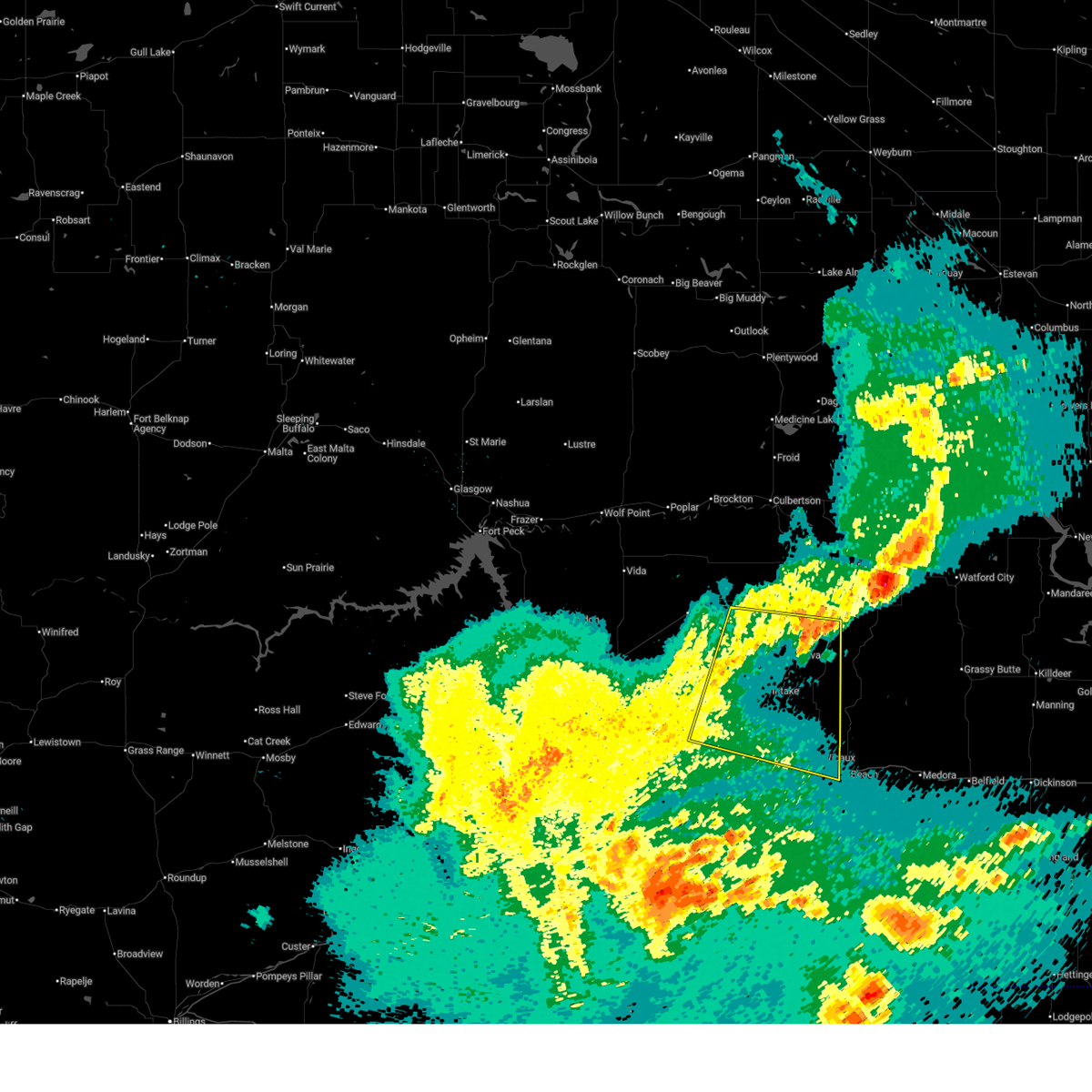 At 354 pm mdt, a severe thunderstorm was located 13 miles southeast of lindsay, and moving east at 40 mph (radar indicated). Hazards include 60 mph wind gusts and penny size hail. Expect damage to roofs. siding and trees. the severe thunderstorm will be near, glendive around 410 pm mdt. intake around 430 pm mdt. Other locations in the warning include forest park and stipek.