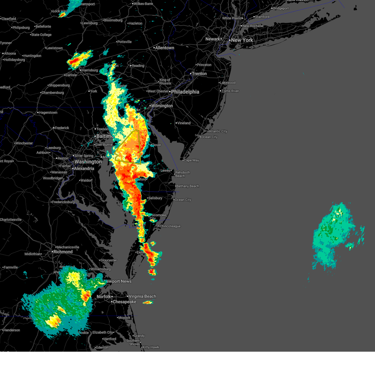 At 955 pm edt, doppler radar indicated a line of severe thunderstorms capable of producing damaging winds in excess of 60 mph. these storms were located over the central portion of chesapeake bay, and moving northeast at 40 mph.