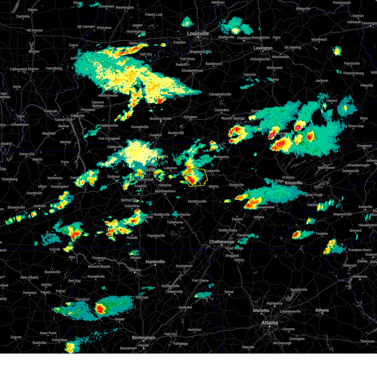At 751 am cst, a severe thunderstorm capable of producing a tornado was located near gordonsville, or 10 miles south of carthage, moving east at 50 mph (radar indicated rotation). Hazards include tornado. Flying debris will be dangerous to those caught without shelter. mobile homes will be damaged or destroyed. damage to roofs, windows, and vehicles will occur. tree damage is likely. this dangerous storm will be near, gordonsville around 755 am cst. baxter around 815 am cst. Other locations impacted by this tornadic thunderstorm include center hill lake, burgess falls state park, edgar evans state park, hickman and alexandria.