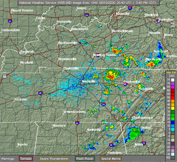 Svrohx the national weather service in nashville has issued a * severe thunderstorm warning for, southeastern smith county in middle tennessee, de kalb county in middle tennessee, white county in middle tennessee, putnam county in middle tennessee, northeastern cannon county in middle tennessee, * until 715 pm cdt. * at 627 pm cdt, severe thunderstorms were located along a line extending from carthage to 8 miles northeast of woodbury, moving east at 40 mph (radar indicated). Hazards include 60 mph wind gusts. expect damage to roofs, siding, and trees