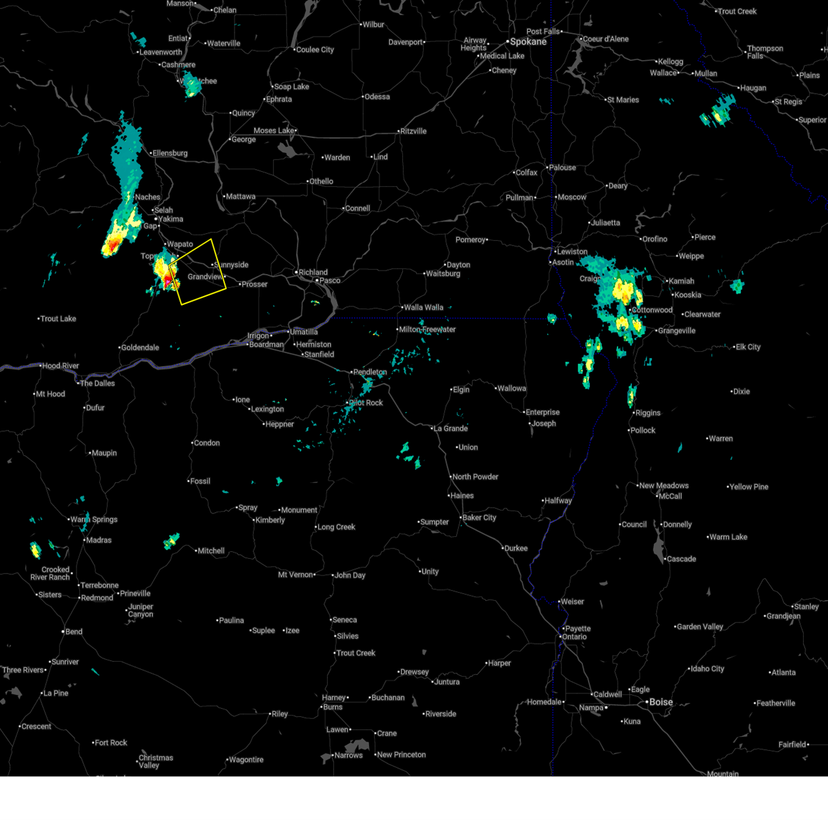 At 1143 pm pdt, a severe thunderstorm was located 7 miles northeast of sunnyside, moving northeast at 50 mph (radar indicated). Hazards include 60 mph wind gusts and quarter size hail. Hail damage to vehicles is expected. Expect wind damage to roofs, siding, and trees.