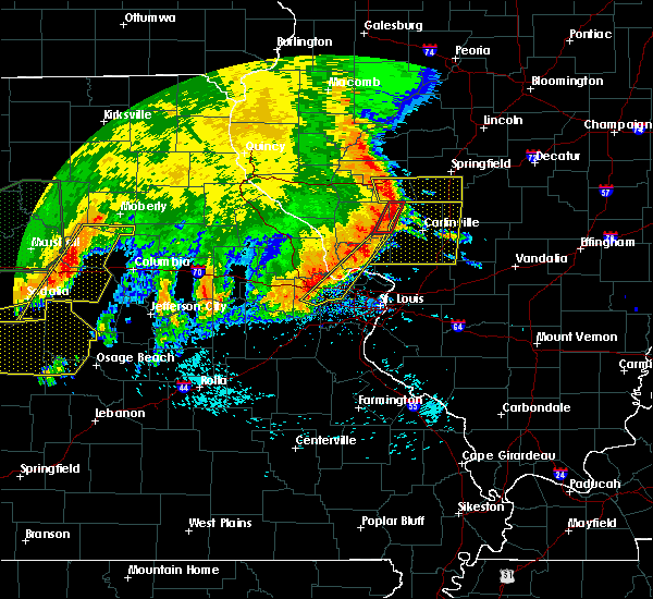 At 1229 am cst, severe thunderstorms were located along a line extending from near palmyra to near kemper to near west alton, moving northeast at 60 mph (trained weather spotters). Hazards include 60 mph wind gusts. Expect damage to roofs, siding, and trees. locations impacted include, florissant, alton, maryland heights, hazelwood, godfrey, bridgeton, wood river, bethalto, jerseyville, litchfield, black jack, carlinville, staunton, virden, gillespie, lambert-st. louis international airport, east alton, carrollton, brighton and girard. this also includes beaver dam state park and lake lou yaeger. this includes the following highways, interstate 55 in illinois between exits 41 and 63. interstate 70 in missouri near exit 231. A tornado watch remains in effect until 400 am cst for south central and southwestern illinois, and east central missouri.