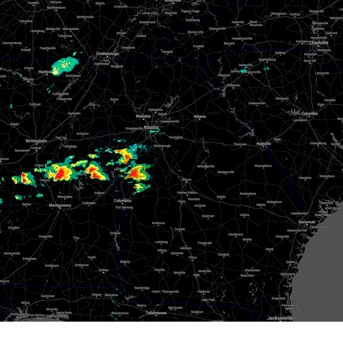 At 347 am est, severe thunderstorms were located along a line extending from near lagrange to pine mountain-callaway gardens to near ellerslie to flat rock, moving northeast at 55 mph (radar indicated). Hazards include 60 mph wind gusts. Expect damage to roofs, siding, and trees. locations impacted include, columbus, lagrange, hamilton, greenville, manchester, hogansville, grantville, pine mountain, woodbury, luthersville, waverly hall, warm springs, woodland, moreland, lone oak, gay, pine mountain-callaway gardens, bibb city, shiloh, and f. d. Roosevelt state park.