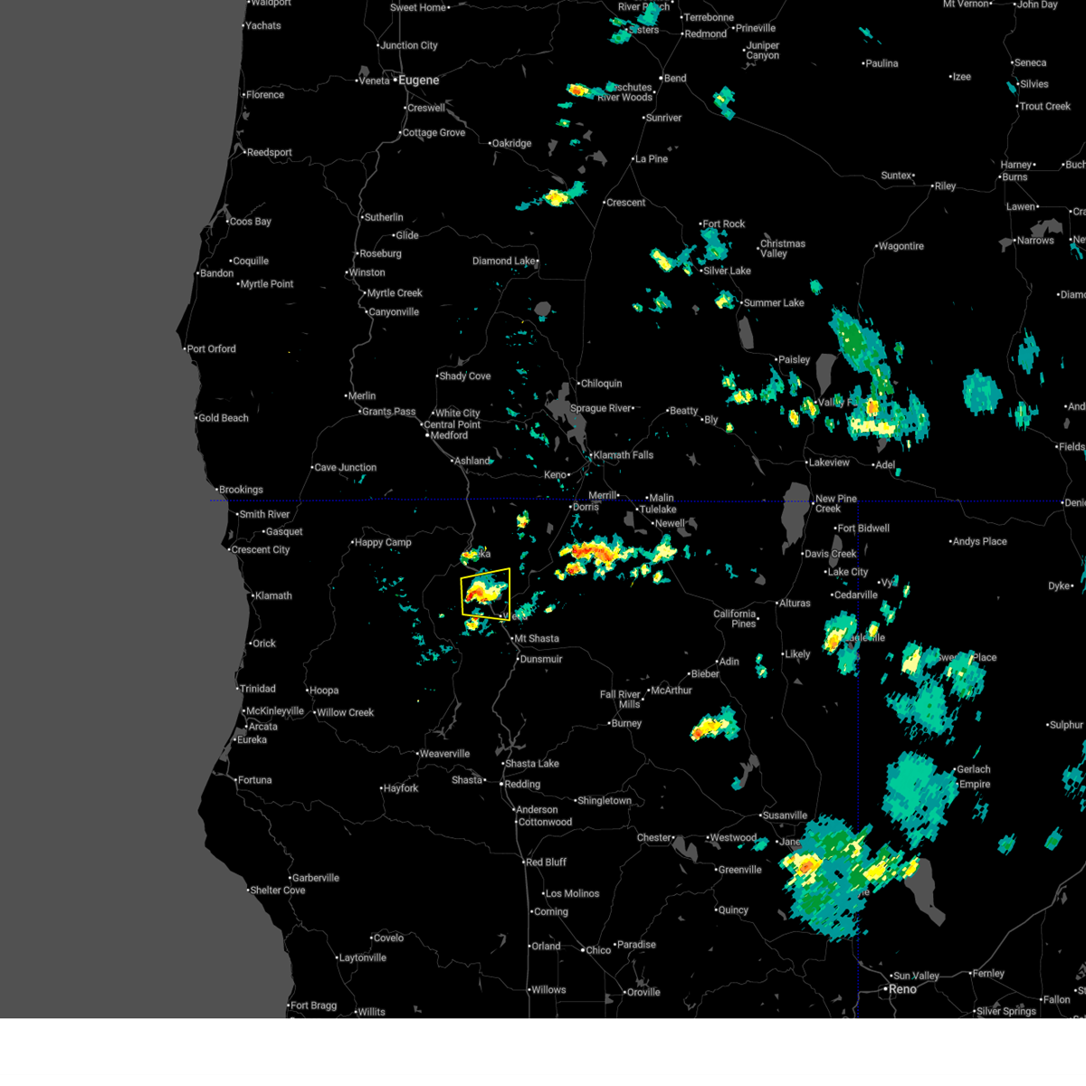 At 547 pm pdt, a severe thunderstorm was located over yreka, moving south at 5 mph (radar indicated). Hazards include 60 mph wind gusts and quarter size hail. Hail damage to vehicles is expected. expect wind damage to roofs, siding, and trees. Locations impacted include, yreka, montague, and grenada.