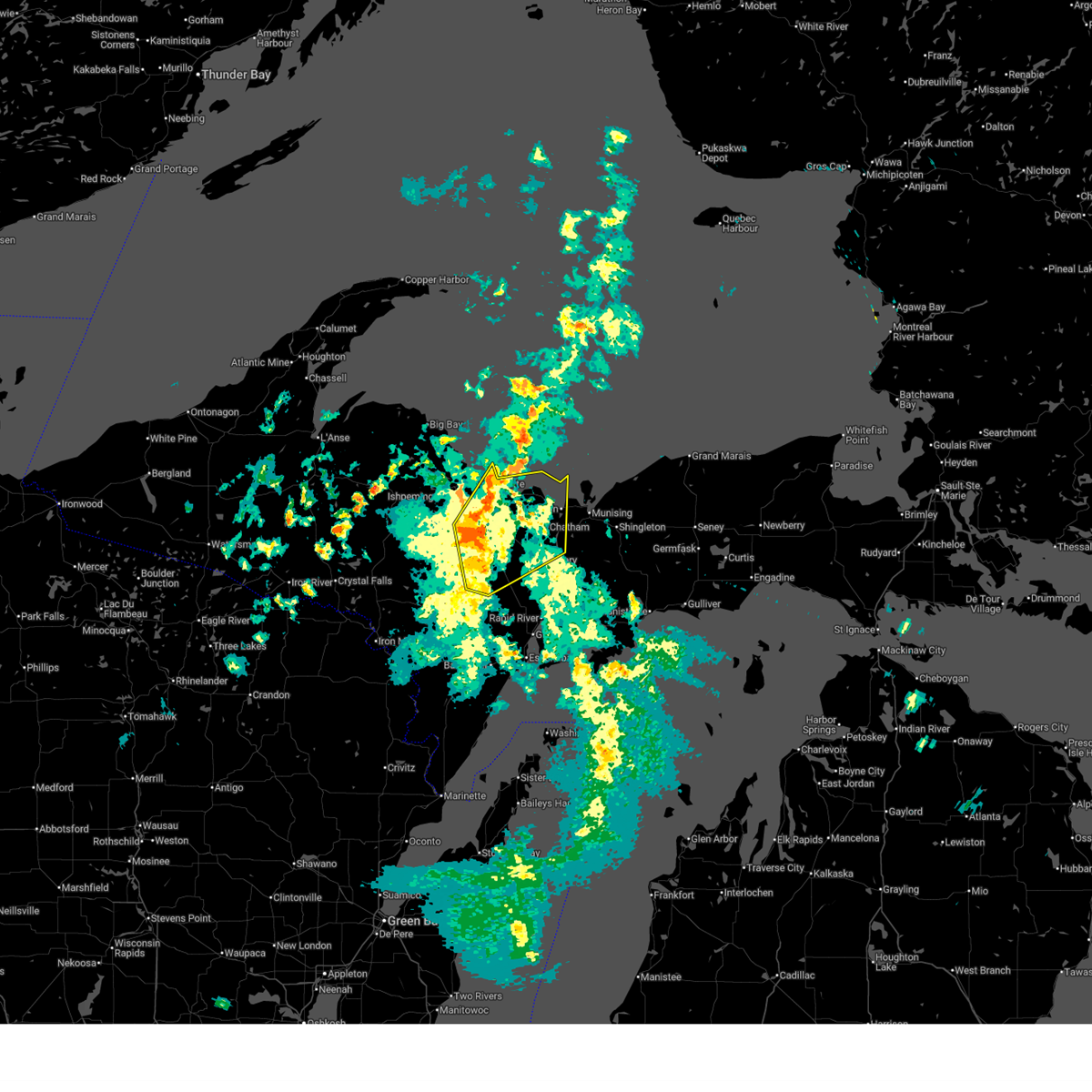 At 748 am edt, severe thunderstorms were located along a line extending from 8 miles north of big bay to 13 miles south of huron river point to near lake michigamme to 7 miles northwest of channing, moving east at 55 mph (law enforcement. numerous trees and powerlines were reported down across baraga county). Hazards include 60 mph wind gusts and penny size hail. Expect damage to roofs. siding and trees. Locations impacted include, marquette, ishpeming, presque isle, negaunee, michigamme, champion, the huron islands, gwinn, shot point, squaw lake, harvey, lake michigamme, big bay, k i sawyer, trowbridge park, witch lake, halfway village, little presque isle, saux head point and huron river point.
