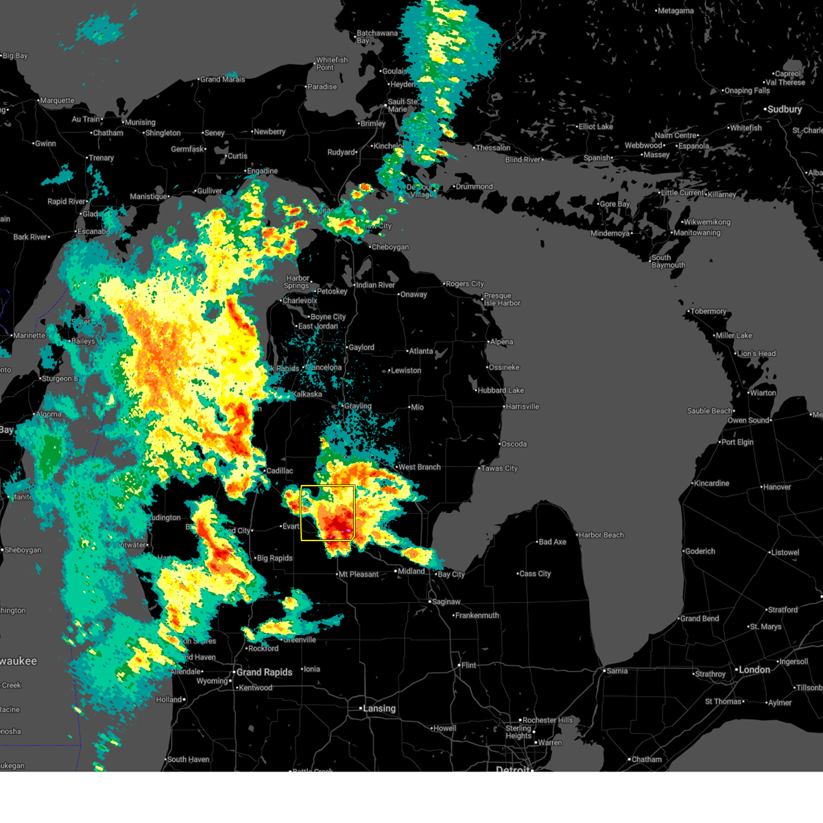 At 753 pm edt, severe thunderstorms were located along a line extending from near marion to near evart to 7 miles east of white cloud, moving east at 70 mph. this storm has a history of producing widespread wind damage. additionally, weak rotation has been noted along this line (radar indicated). Hazards include 60 mph wind gusts. expect damage to roofs, siding, and trees