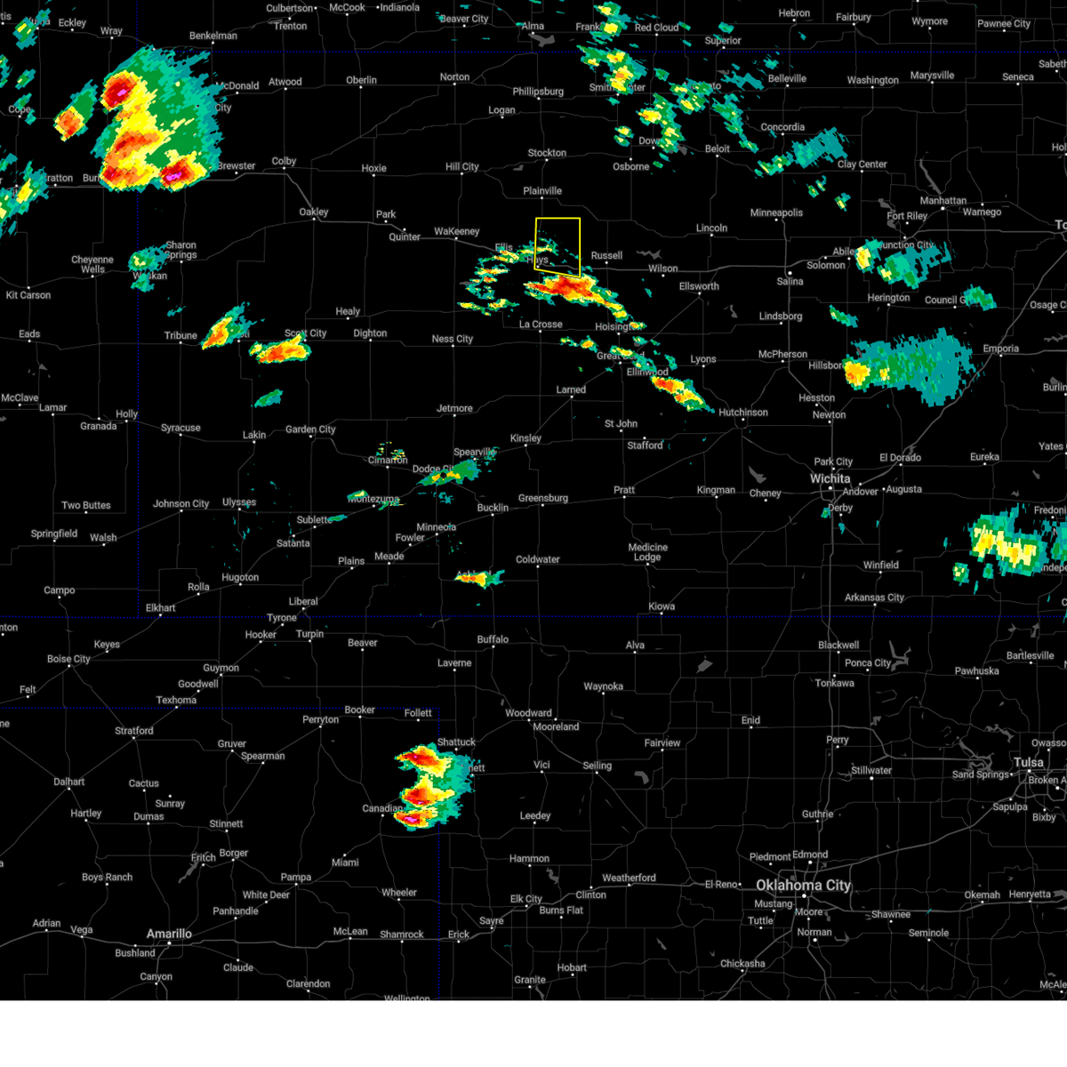 A severe thunderstorm warning remains in effect until 1045 pm cdt for northern rush and southern ellis counties. at 1019 pm cdt. a severe thunderstorm was located 7 miles southwest of antonino. moving east at 45 mph. hazard. 60 mph wind gusts and penny size hail. source. Radar indicated.